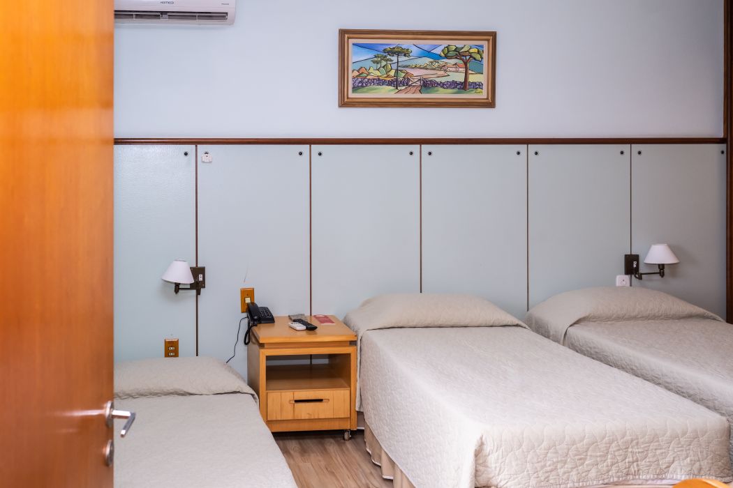O quarto triplo é ideal para quem está viajando em família ou amigos. Espaço aconchegante e tranquilo com vista para o lago. Opção de cama de casal + solteiro, ou três camas de solteiro.