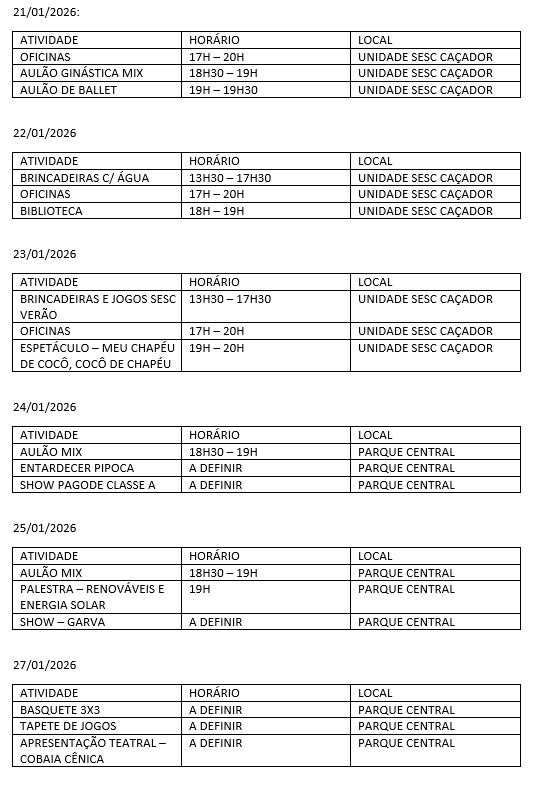 Acesse abaixo a agenda do Sesc Verão e não deixe de curtir o evento!