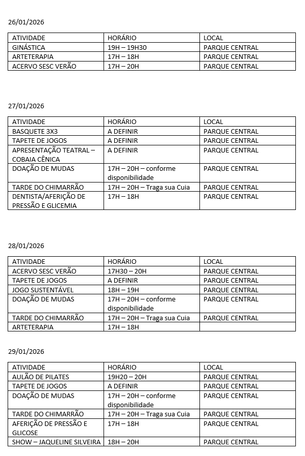 26 de janeiro – Segunda-feira (Unidade Sesc Araranguá)