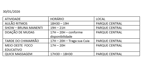 16h30 às 20h: Brincadeiras e diversão — mini esportes; futebol; basquete; atletismo; paradesporto e jogos com água: festa das cores, lança-água