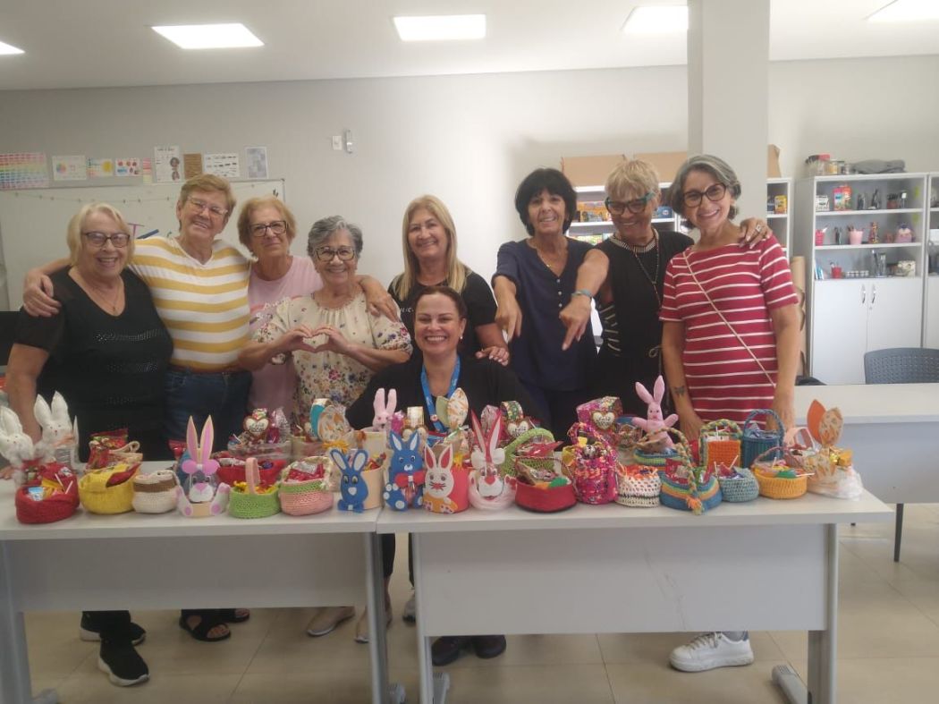 No Sesc Ingleses, o grupo Conecta 60+ promoveu ações com foco no voluntariado. Há três anos, é tradição entre os participantes confeccionar Cestas de Páscoa Artesanais em março e abril, utilizando técnicas como crochê e costura. As cestas são recheadas com guloseimas e destinadas às duas casas de acolhimento provisório e institucional do bairro: a Casa Lar Luz do Caminho e a Casa Lar Semente Viva, por meio das assistentes sociais das instituições.