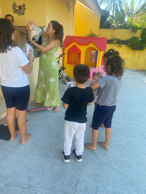 Nesta Páscoa, foram produzidas 39 cestinhas e 5 coelhinhos de pano para crianças com menos de dois anos. Além das crianças residentes, também foram contempladas aquelas atendidas em atividades de contraturno pela Casa Lar Luz do Caminho.