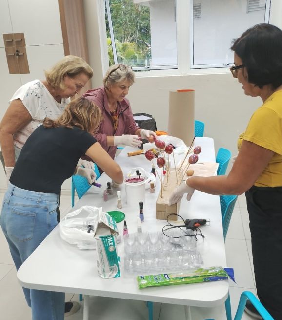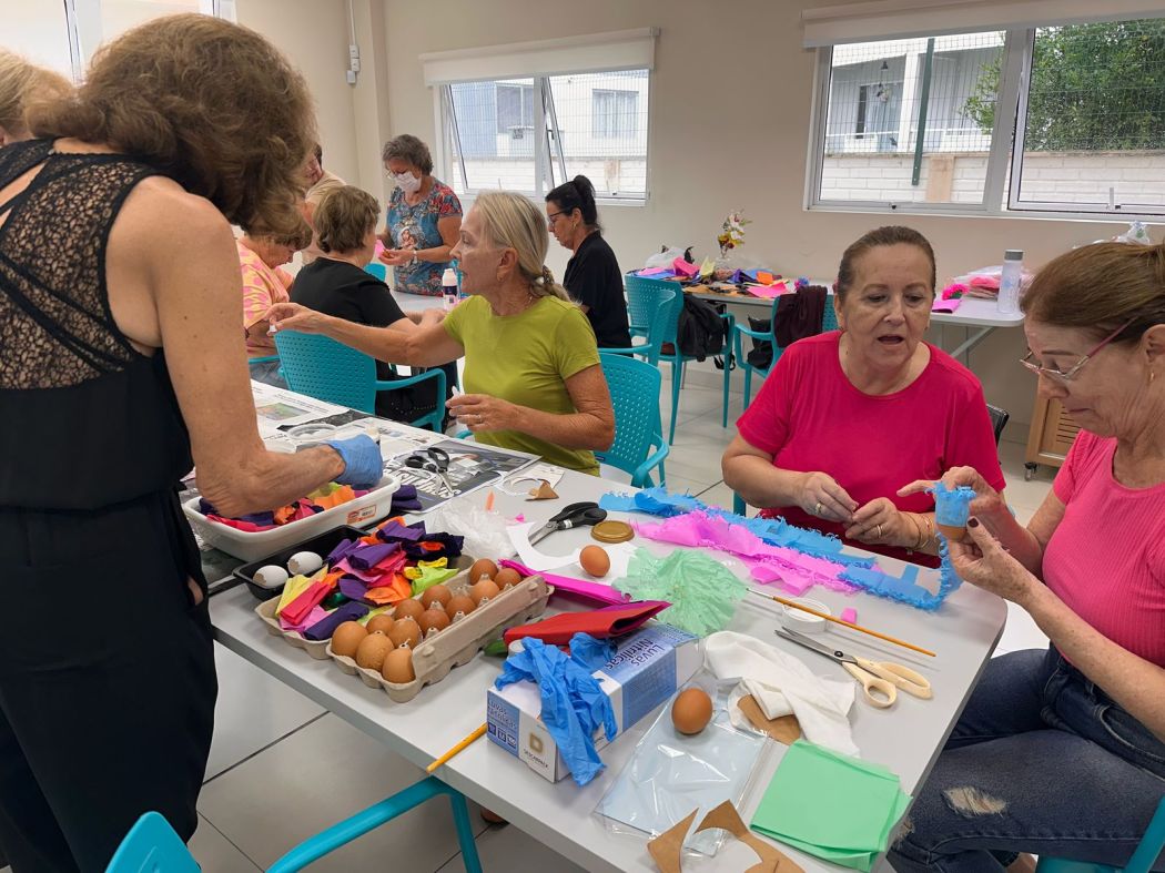 A região de Brusque, marcada pela colonização alemã, mantém viva a tradição da Árvore de Páscoa (Osterbaum), símbolo de renovação. No projeto Mente Ativa, os participantes resgataram memórias afetivas ao confeccionar casquinhas de ovos coloridos, como faziam em família. A atividade estimulou a coordenação motora e o convívio entre gerações. Um concurso de amêndoas de Páscoa também valorizou receitas tradicionais, fortalecendo os laços e histórias comunitárias.