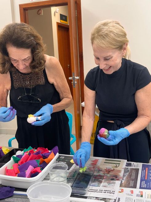 "Todas as tardes de Mente Ativa são especiais, mas a desta semana se superou. A atividade já começou na escolha do material, envolvendo o grupo. Nos dias seguintes, veio o preparo dos modelos das casquinhas decoradas, a confecção de moldes para ajudar as amigas a entender melhor o processo. Na minha opinião, todas realizaram as tarefas com maestria, muita alegria e dedicação. Foi uma volta ao passado com lembranças muito agradáveis.”