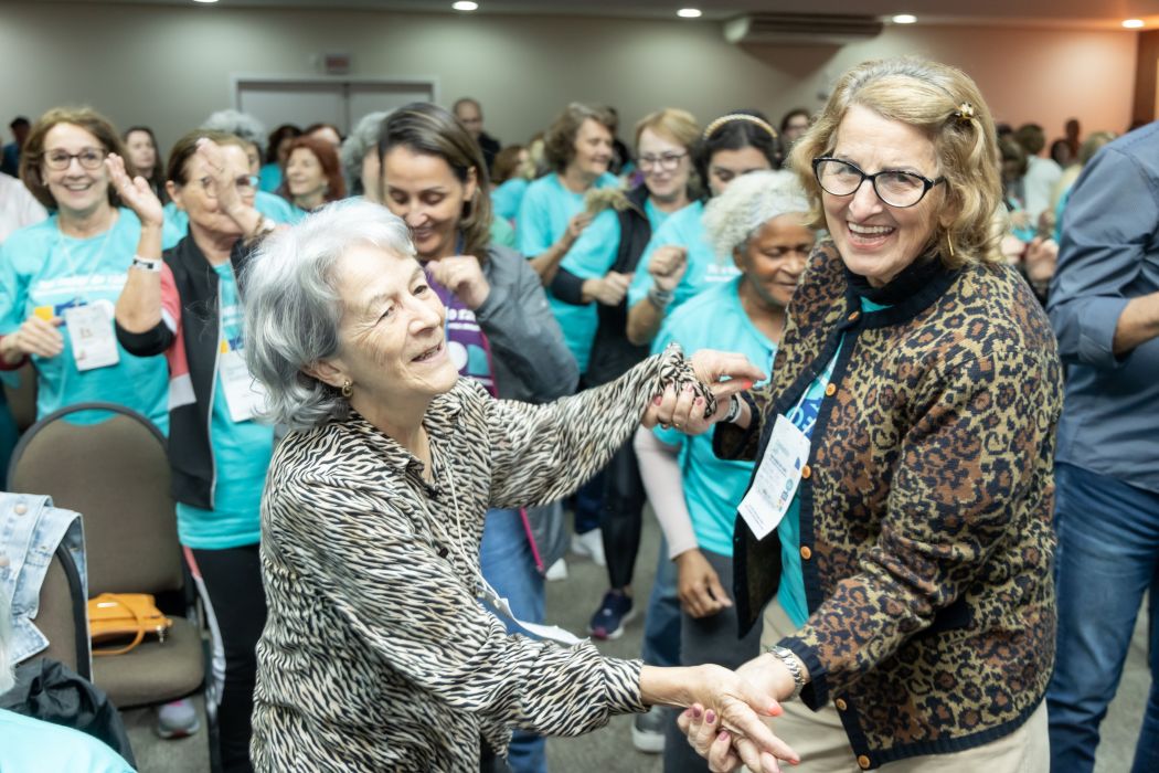 Dona Líbera de Oliveira Capeletti, de 98 anos, participa de atividades no Sesc Chapecó há mais de 40 anos. Ela relata o Encontro 60+ é ótimo para rever aos amigos, além promover momentos de grande celebração.