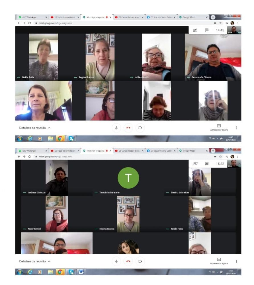 Os encontros acontecem pela ferramenta (aplicativo) Google Meet e cada um acompanha as aulas no conforto de sua casa. Teve chá virtual, gincana virtual, participação especial de convidados, homenagem, inclusão digital, assuntos que ganham espaço na internet e é claro uma boa conversa pra matar um pouco a saudade dos encontros presenciais.
