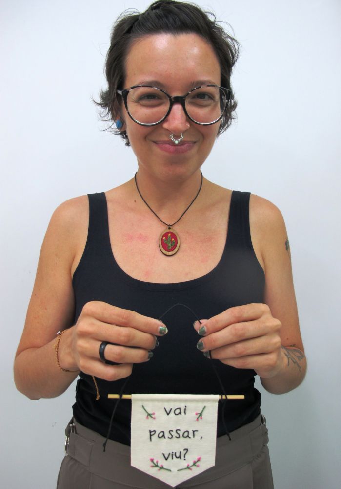 Muita gratidão à Carina, Patrícia e Vanessa sempre muito bem solícitas, atenciosas, inovadoras, sabendo conduzir todos os conteúdos de forma segura e com didática própria ao que o curso propôs. Muitas vezes vão além de facilitadoras, são mão e colo amigo. Obrigada ao Sesc minha instituição querida, por oportunizar esse projeto que tem nos proporcionado essa capacitação, envolvimento e mudança de comportamento. Sairemos não só melhores artesãos, mas muito mais envolvidos com o próximo.
