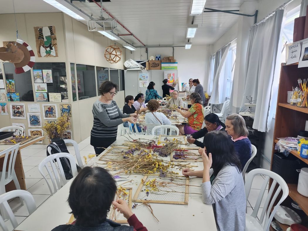 A oficina foi ministrada pela professora de Agronomia, Eliziane Luiza Benedetti , e pela professora de Artes,Carla Sussenback, que conduziram a atividade de forma sensível e inspiradora. Em Canoinhas, o grupo Conecta 60+ é coordenado pela instrutora Rosana Aparecida Grubber Muller da Silva, que acompanha e estimula a participação dos integrantes em diversas ações culturais, educativas e de lazer promovidas pelo Sesc.