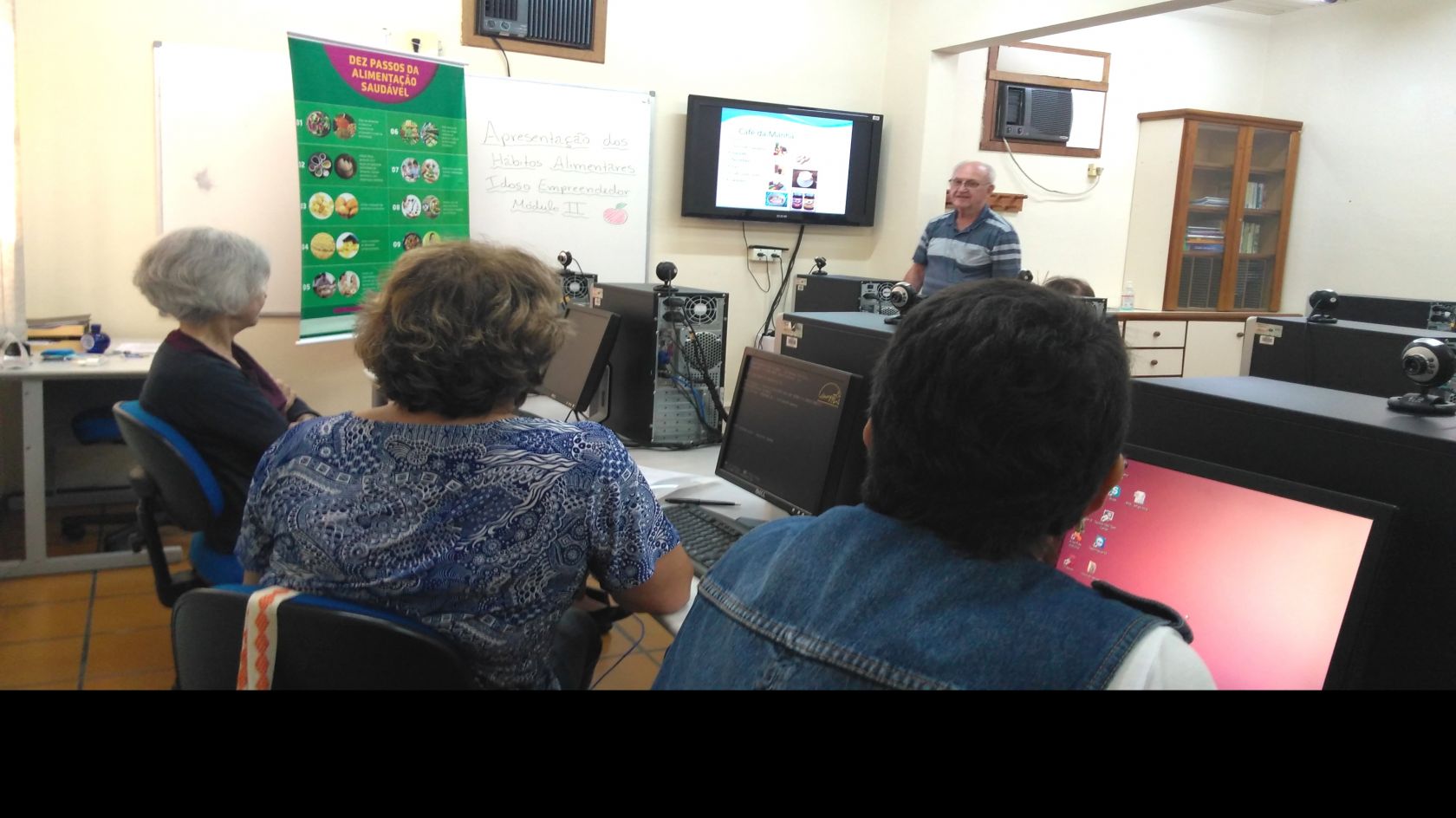 Em agosto e setembro, as turmas inscritas no Projeto Idoso Empreendedor em Blumenau, participaram de uma atividade especial, realizada em parceria com a área da nutrição do Sesc. Cada integrante elaborou uma apresentação no programa PowerPoint sobre seus hábitos alimentares, contendo: café da manhã, almoço, café da tarde, jantar e seus alimentos favoritos.