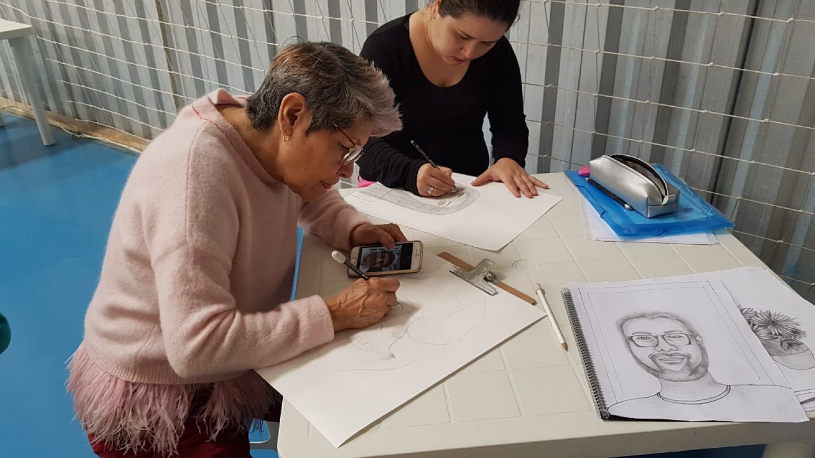 O Sesc Comunidade São José realizou a oficina de desenho, no mês de agosto, que contou com 17 participantes inscritos de 07 a 75 anos de idade. Os participantes puderam, em quatro encontros, desenhar, traçar a linha, a luz, o volume, a proporção e a perspectiva, tanto quanto os temas de desenho de observação como a natureza morta, o retrato e a paisagem.