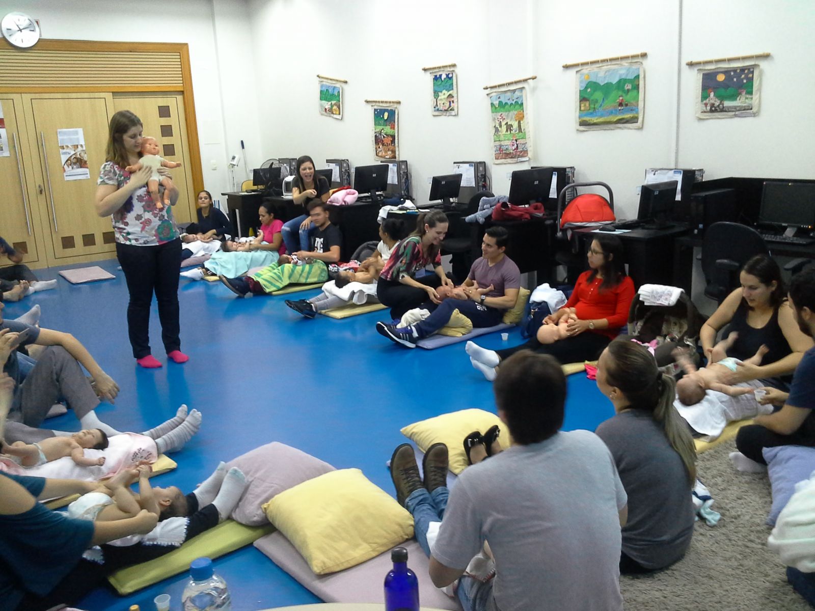 A oficina foi ministrada pela naturóloga Fernanda Fock, especialista em Acupuntura, Educadora Perinatal, consultora em Aleitamento Materno e Doula pós-parto. Ela abordou sobre o vínculo emocional e a importância do toque no desenvolvimento do bebê e da criança, benefícios da Shantala para bebês e crianças e orientações sobre banho de balde (ofurô) para bebês com uso de ervas e óleos. Os participantes puderam utilizar a massagem em boneca (bebê) ou seu próprio bebê a partir de 1 mês para aplicar a massagem.