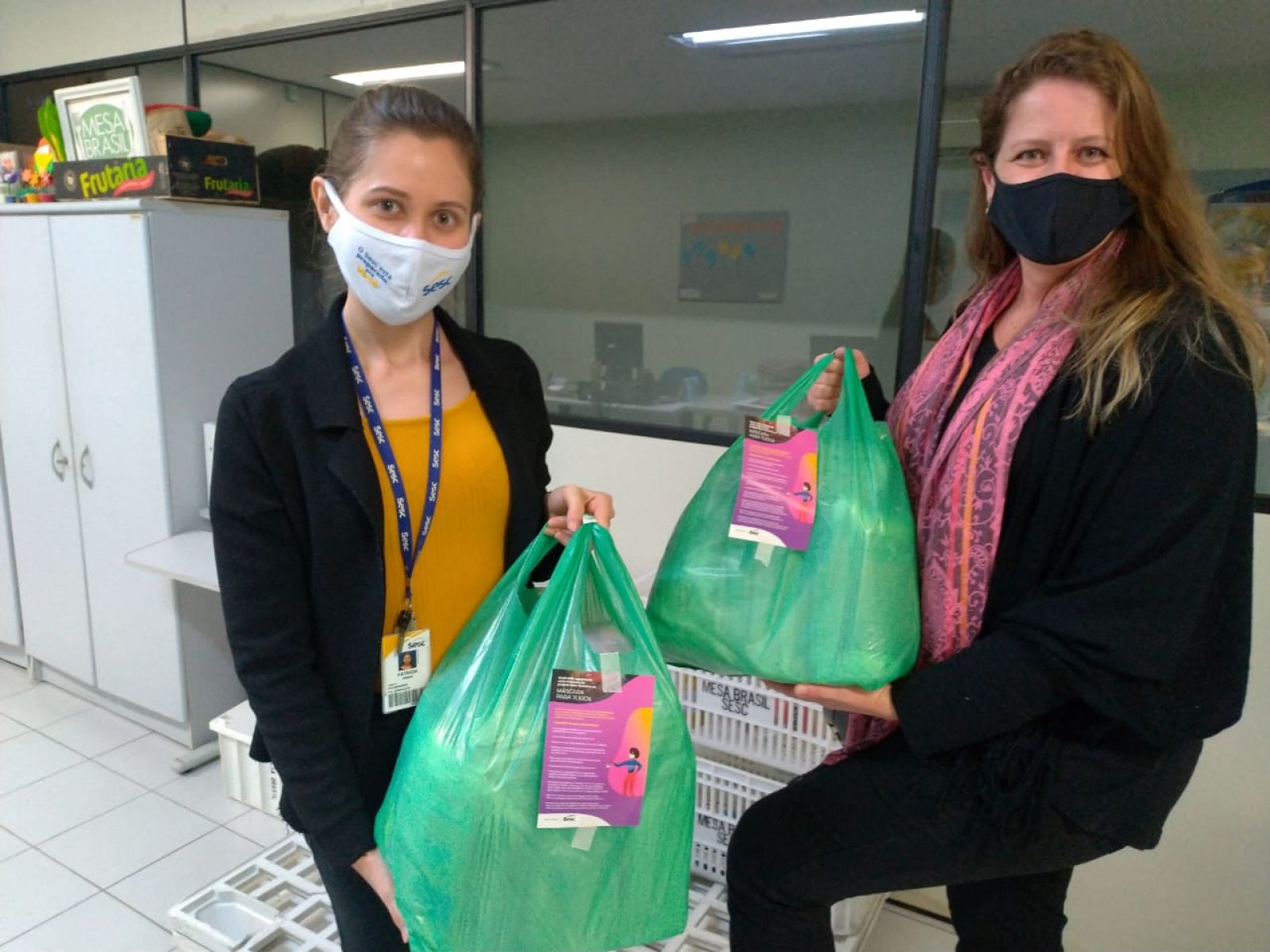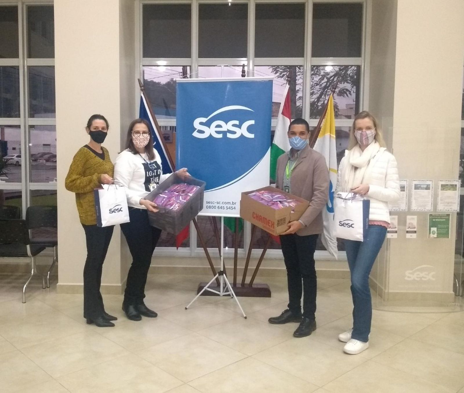 O Sesc arrecadou tecidos 100% algodão, TNT, malha/fio de malha, tesoura de tecido, agulhas, linhas, elásticos. Podiam doar pessoas físicas ou empresas, e era preciso fazer contato com a Unidade do Sesc Santa Catarina para agendar a entrega, que a Instituição ia até o local para receber o material.