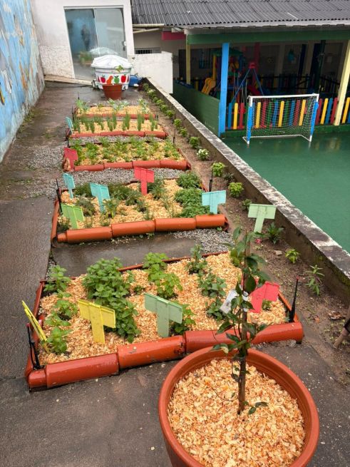 As hortas foram planejadas com assessoria técnica e implantadas como espaços de aprendizado e cuidado com a natureza, permitindo às crianças vivenciar os ciclos naturais, compreender o papel dos insetos e das estações do ano e acompanhar o crescimento das plantas. Além de estimular o contato com o meio ambiente, o projeto incentiva hábitos alimentares saudáveis e o respeito pelos alimentos.