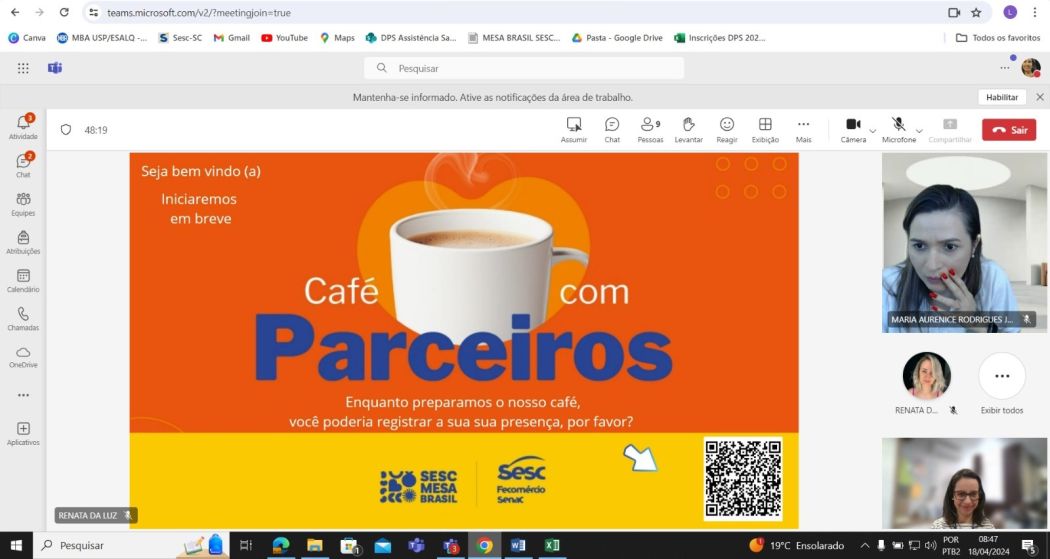 O Café com Parceiros do Sesc Mesa Brasil aconteceu entre os dias 18 e 26 de abril em Florianópolis, Joinville, Chapecó, Blumenau e Lages, conectando 224 representatividades de diferentes setores que participam da rede de Bancos de Alimentos do Sesc no estado.