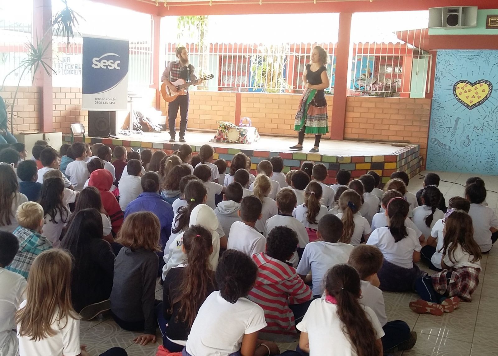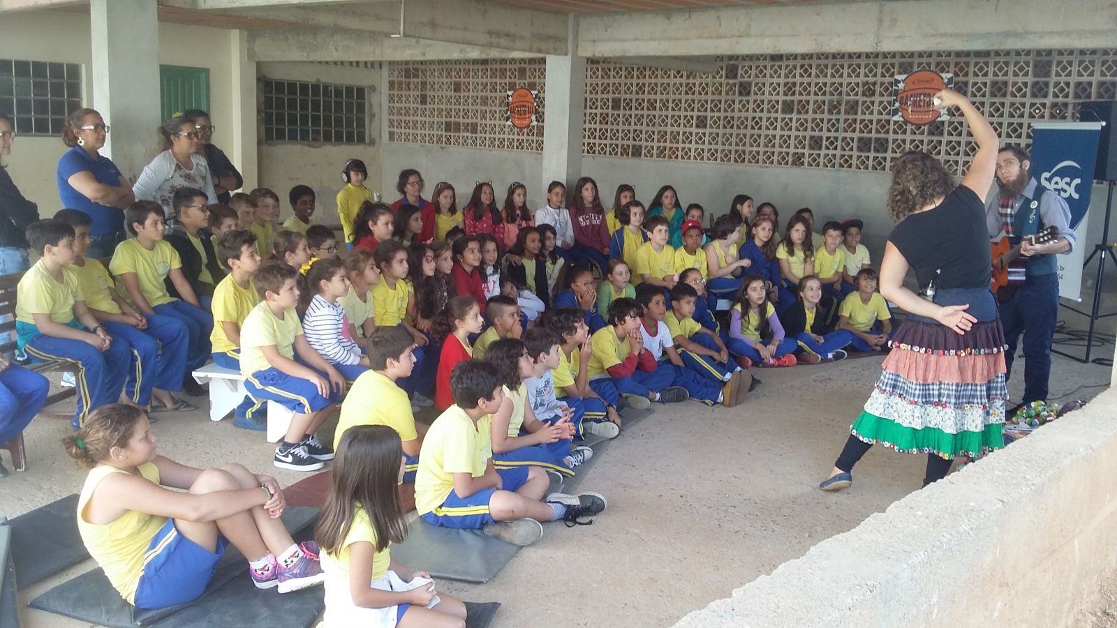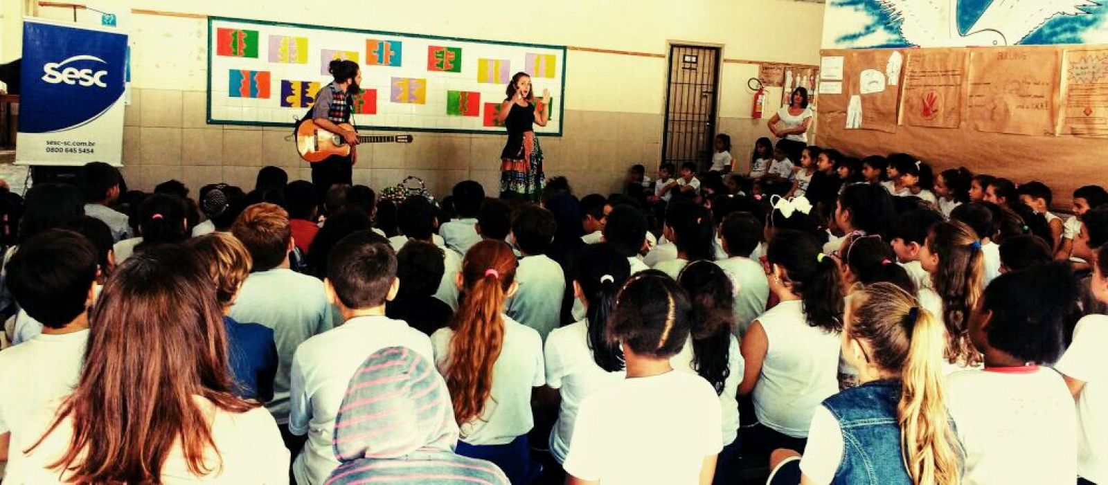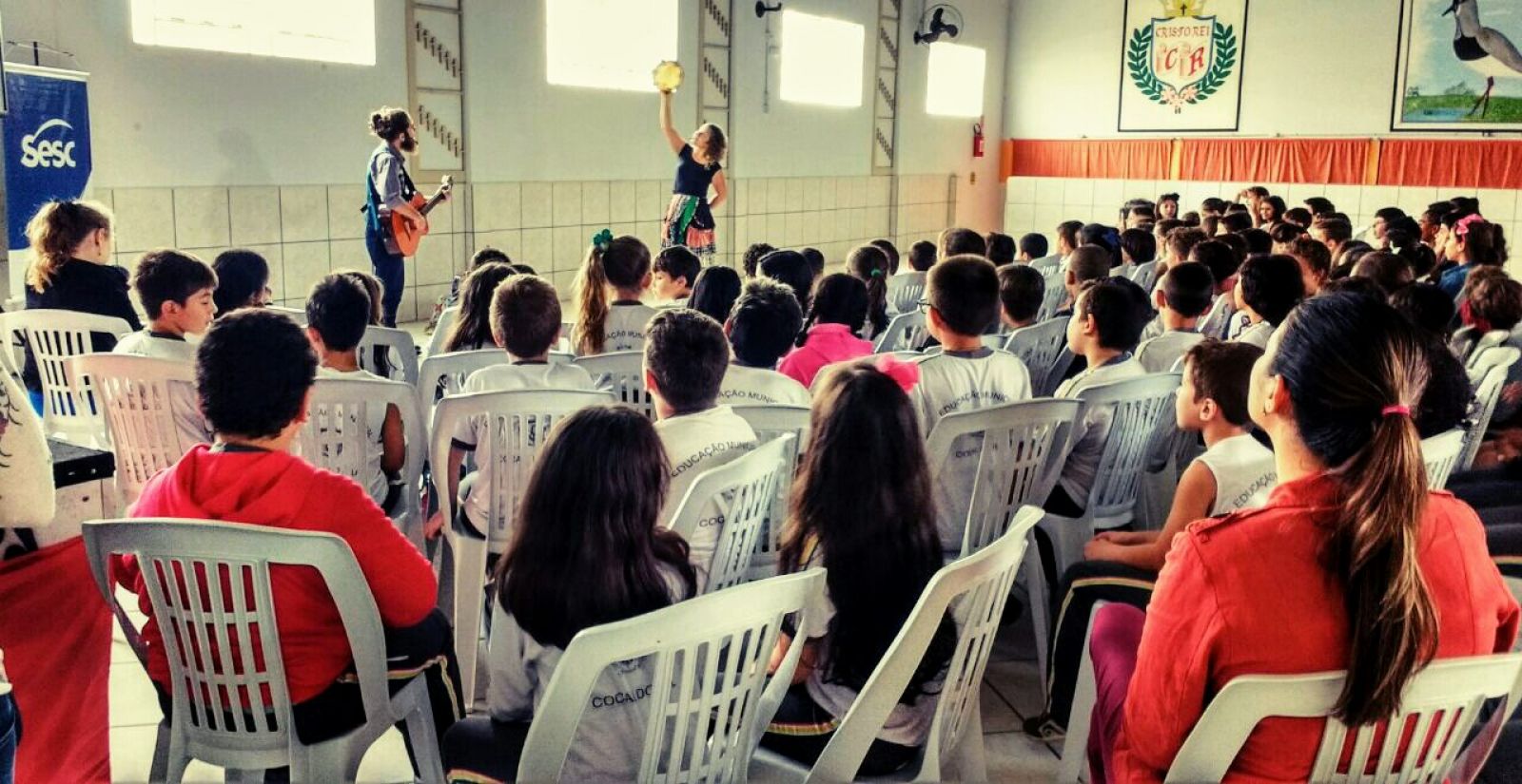 O teatro quanto expressão artística é capaz de gerar transformações no meio social, ainda mais quando apresentado com uma linguagem que provoca, sensibiliza, emociona. Assim foi a apresentação do Grupo Cirandela Teatro. Ainda encantados com as apresentações, os estudantes relembraram cantigas, contos populares e histórias da própria autoria dos artistas. ‘Lá vem poesia pra cantar, lá vem poesia pra encantar...’ trecho de uma das canções cantada pelos artistas, ficou como referência nas aulas do projeto Literatura em ação, onde os estudantes estudam poemas e outros textos literários. O nosso imenso agradecimento ao Bruno Andrade e Priscila Schaucoski pelas belíssimas apresentações e principalmente ao Sesc por nos promover momentos como este.
