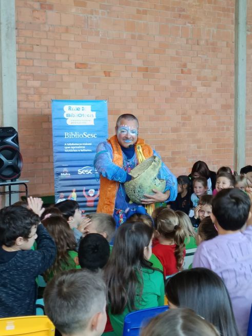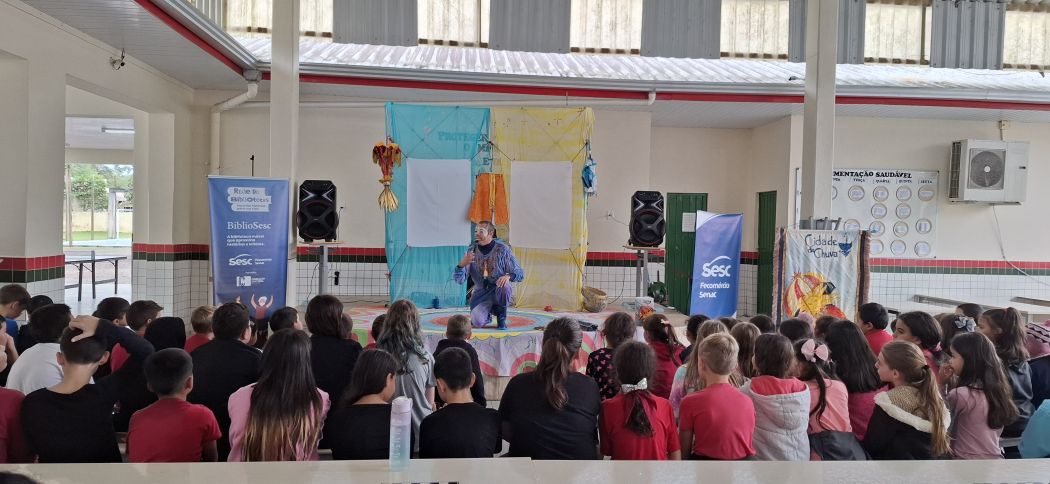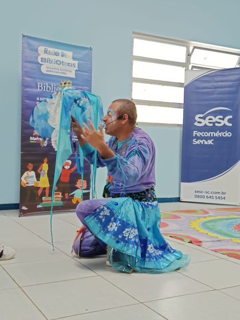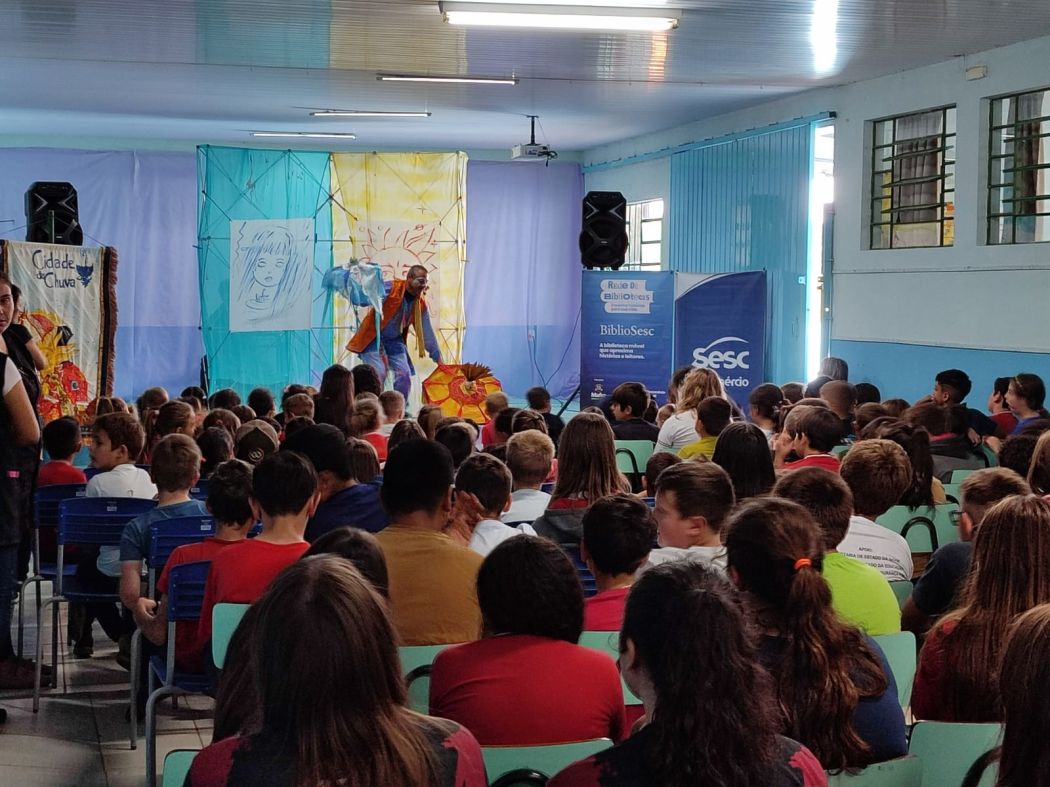 Além dos serviços de biblioteca, o BiblioSesc promove programação cultural nas cidades por onde passa, ampliando o acesso à arte e à literatura por meio de diferentes linguagens artísticas, para além dos livros. Neste primeiro semestre, a atração em destaque foi o espetáculo de contação de histórias “Cidade da Chuva”, apresentado por Humberto Soares, da Pequeninus Cia. de Teatro. Em maio, a montagem percorreu 10 comunidades dos municípios de Mafra e Rio do Sul, onde a biblioteca móvel realiza atendimentos semanais com consulta, empréstimo e mediação de leitura.