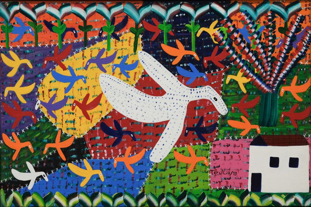 Com curadoria de Clarissa Diniz e Deise Oliveira, a mostra estreou em Itajaí, em 2024, e segue agora para Concórdia, oferecendo mais uma oportunidade de explorar a trajetória artística de Tercília, iniciada há mais de trinta anos, com um sonho transformador. Em sua visão, ela viu um portal luminoso “bem faiscante e colorido, do qual mulheres entravam e saiam, comentando os erros praticados pelos humanos”. Ao notar sua presença naquela paisagem cintilante, Jesus Cristo se aproximou, revelou algumas obras de arte e declarou que ela também deveria pintar.