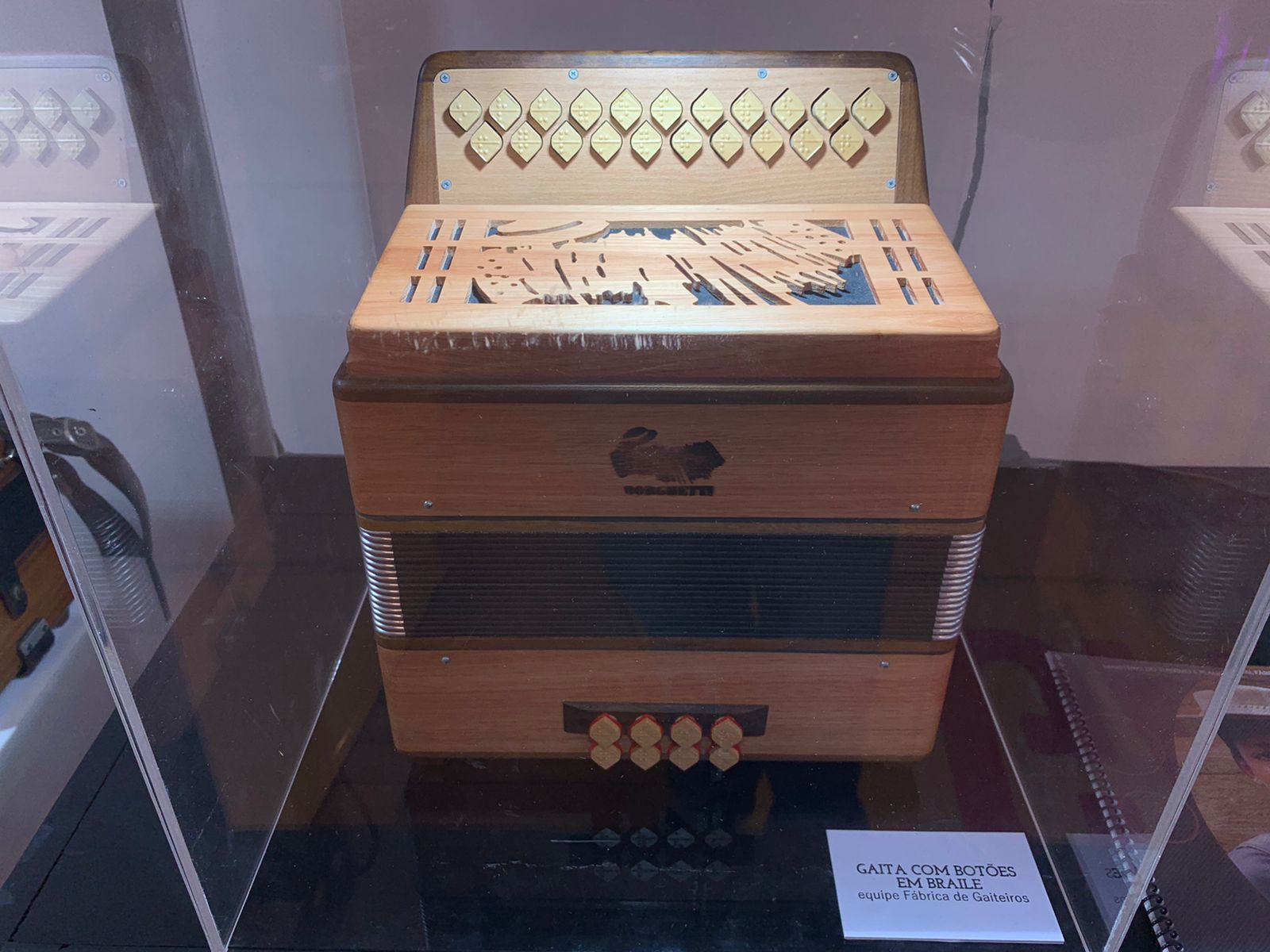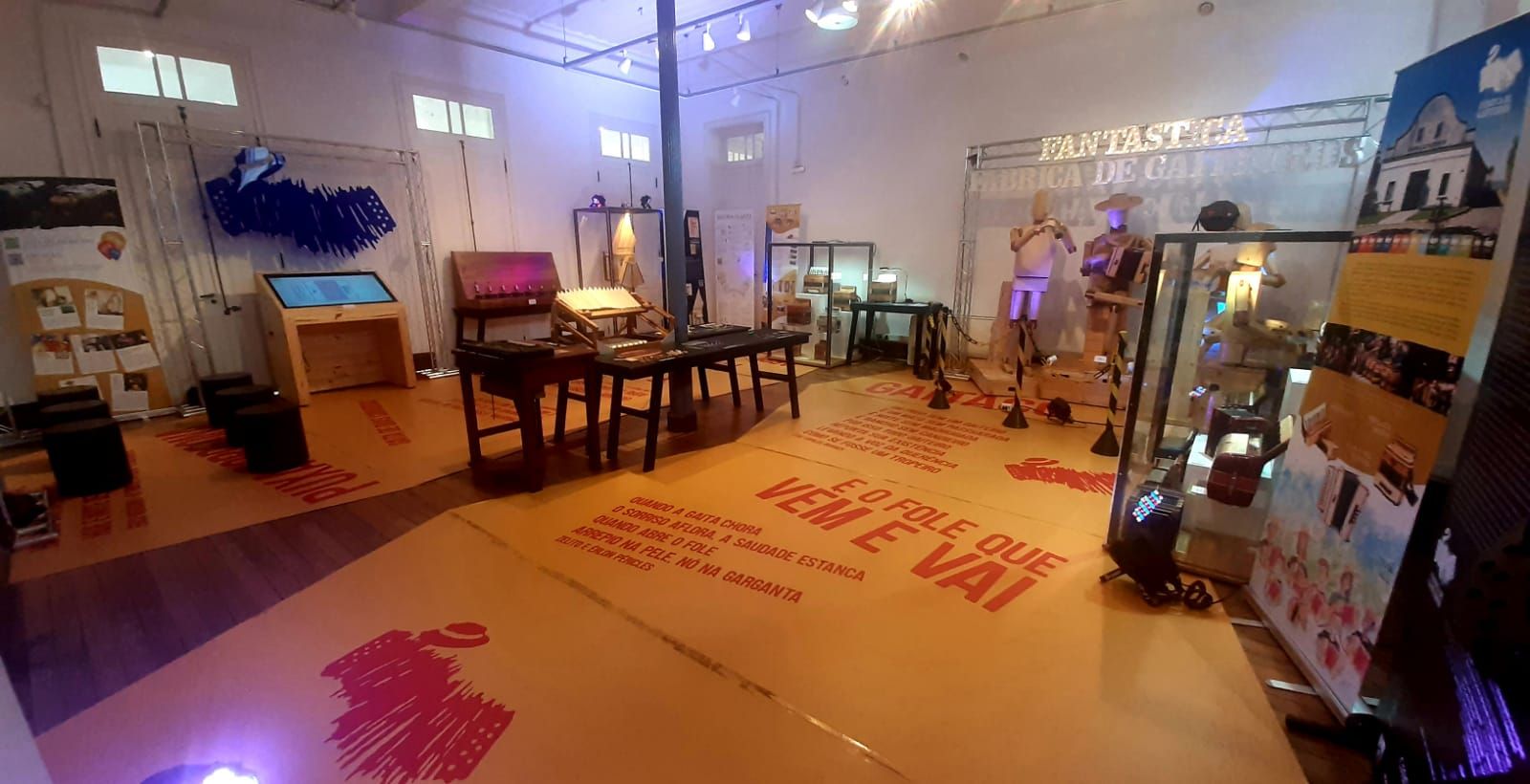 Música, tradição, sustentabilidade, experiência e pertencimento são apresentados em um percurso que mostra as diversas etapas da fabricação da gaita, além de ambientes de convivência e experimentação. Um quarteto de bonecos de madeira articulados, recepcionam os visitantes que encontram diferentes tipos de acordeon, um simulador de gaita, uma gaita com os botões em braile e muito mais.
