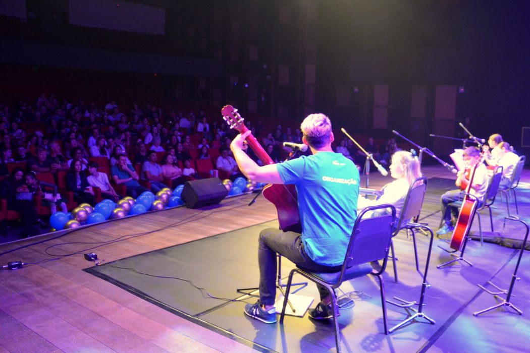 A programação iniciou com as turmas de Violão Infantojuvenil e de Musicalização Infantil, conduzidas pelo instrutor Gustavo Borges Duarte, que apresentaram um repertório variado com músicas populares e clássicos da música brasileira, recebendo aplausos calorosos do público.