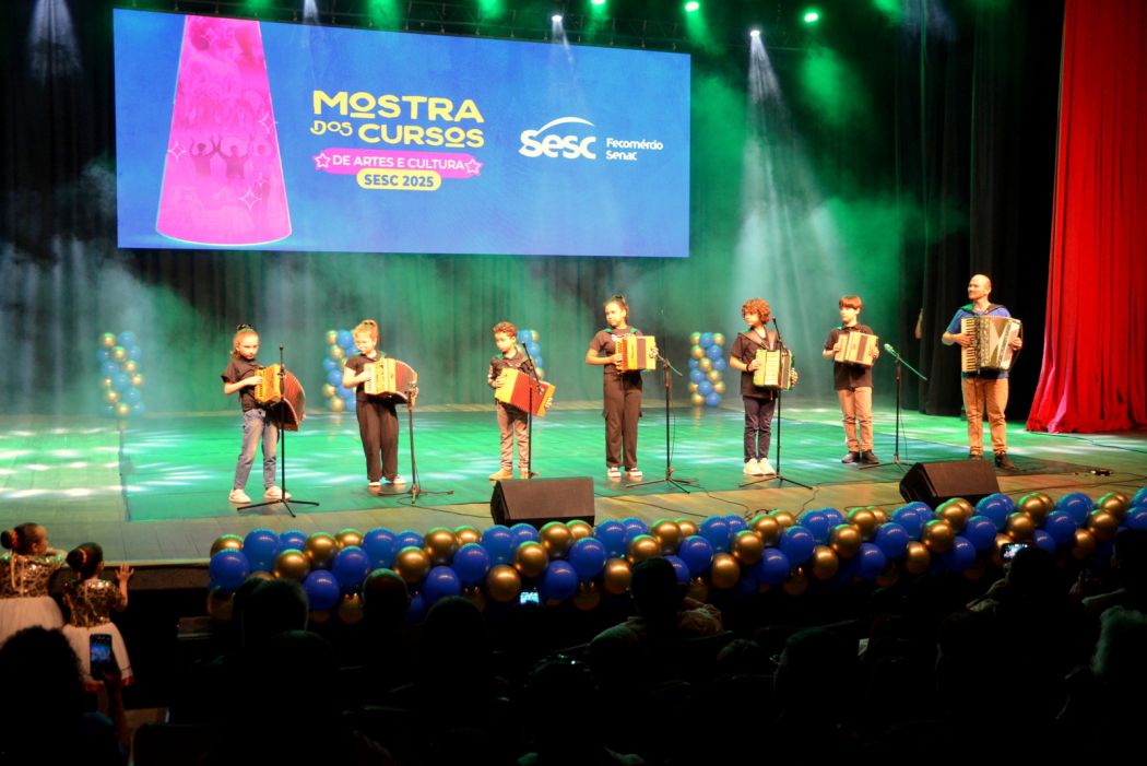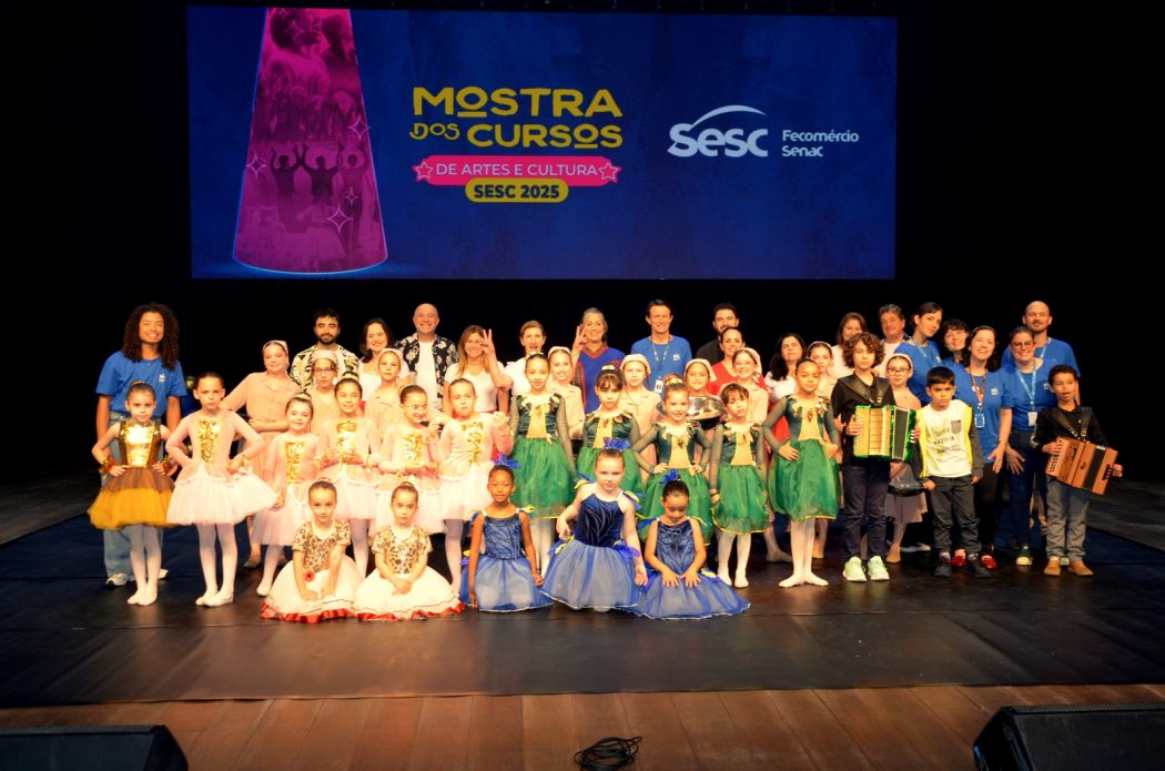 O Sesc Criciúma realizou no dia 13 de novembro, no Teatro Elias Angeloni, a sua Mostra dos Cursos de Artes e Cultura, reunindo alunos, familiares e comunidade para prestigiar os resultados do trabalho desenvolvido ao longo do ano. O evento proporcionou apresentações que evidenciaram o aprendizado, a criatividade e a dedicação dos participantes, celebrando o percurso até o momento.