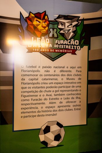 Na terça-feira, dia 13 de setembro, o Sesc Santa Catarina inaugurou a exposição “Leão da Ilha X Furacão do Estreito - 100 anos de Memórias” no Museu de Florianópolis. De forma interativa, a mostra temporária apresenta o universo do futebol e da disputa entre dois times da Capital catarinense, o Avaí Futebol Clube, que completa 100 anos em 2023, e o Figueirense Futebol Clube, que celebrou o centenário em 2021.