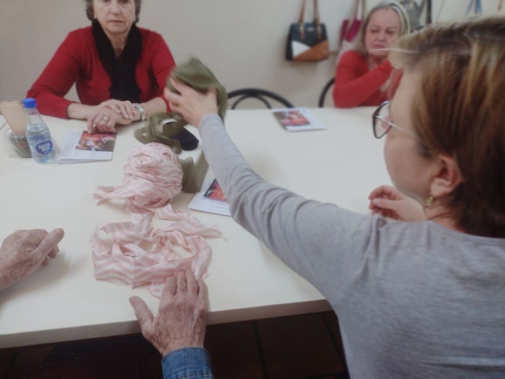 “As oficinas oportunizam ao participante aprender a trama (técnica de crochê) através do aproveitamento de resíduo têxtil da região. Os encontros têm foco no trabalho manual para desenvolver e tramar objetos utilitários carregados de aspectos culturais e sustentáveis” relata Monica.