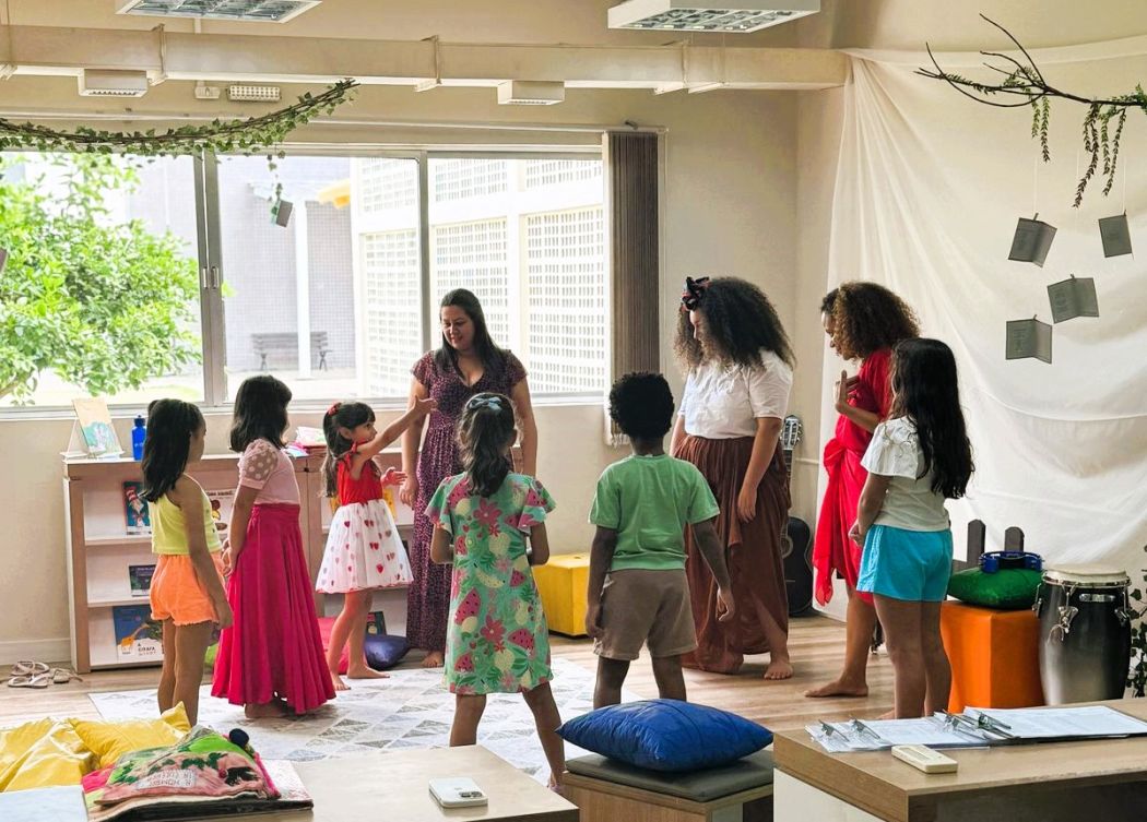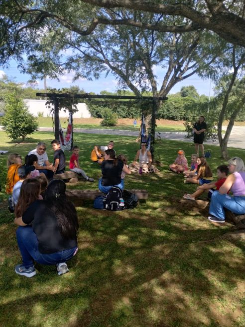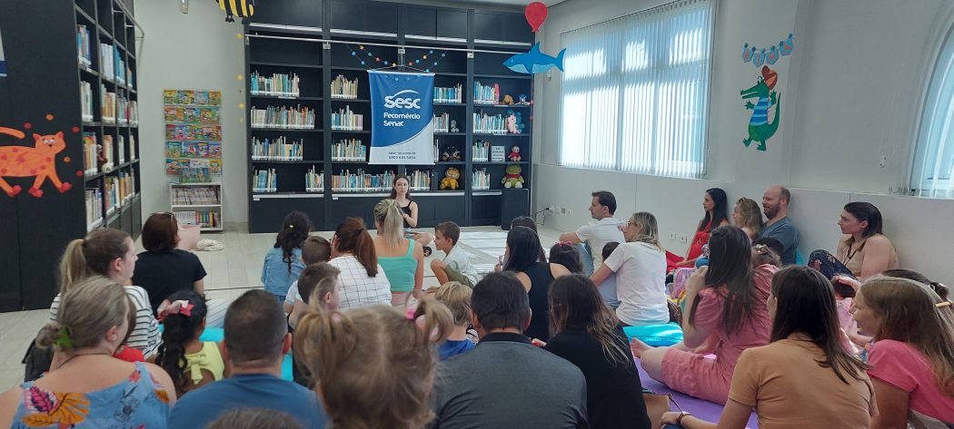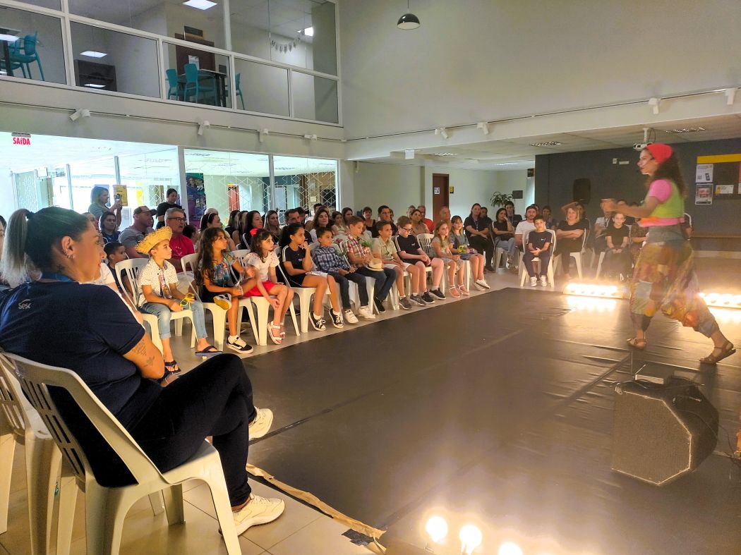 Na Unidade Sesc Estreito, por exemplo, a artista Laís Goes encantou o público com a contação do livro "E foi assim que eu e a escuridão ficamos amigas", de Emicida, abordando temas como medo e coragem de maneira sensível e poética.