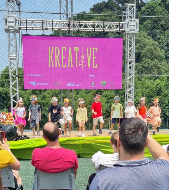 O evento contou com a feira das artesãs, contação de histórias na biblioteca, apresentações artísticas e culturais da Escola Sesc, circuito de ginástica infantil, pintura facial, oficina de costura criativa e concerto didático com as musicistas Lidiane Tacheck, Greycy Schwender e Laíne Train.