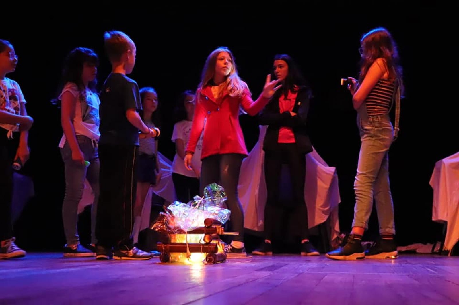 Os primeiros a pisarem no palco foram os alunos da turma de teatro infantil, com a apresentação do suspense “O Monstro do Lago”. O grupo, que atualmente conta com 20 alunos, se mostrou maduro e autônomo em cena e apresentou um espetáculo divertido e enigmático, que prendeu a atenção do espectador.