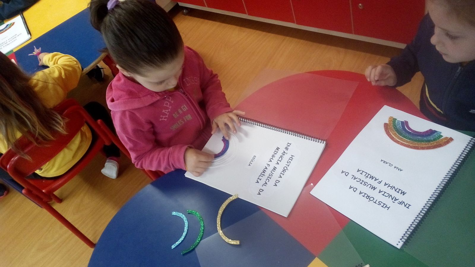 finalizar, decoraram a capa do livro, com o arco-íris e as notas musicais e