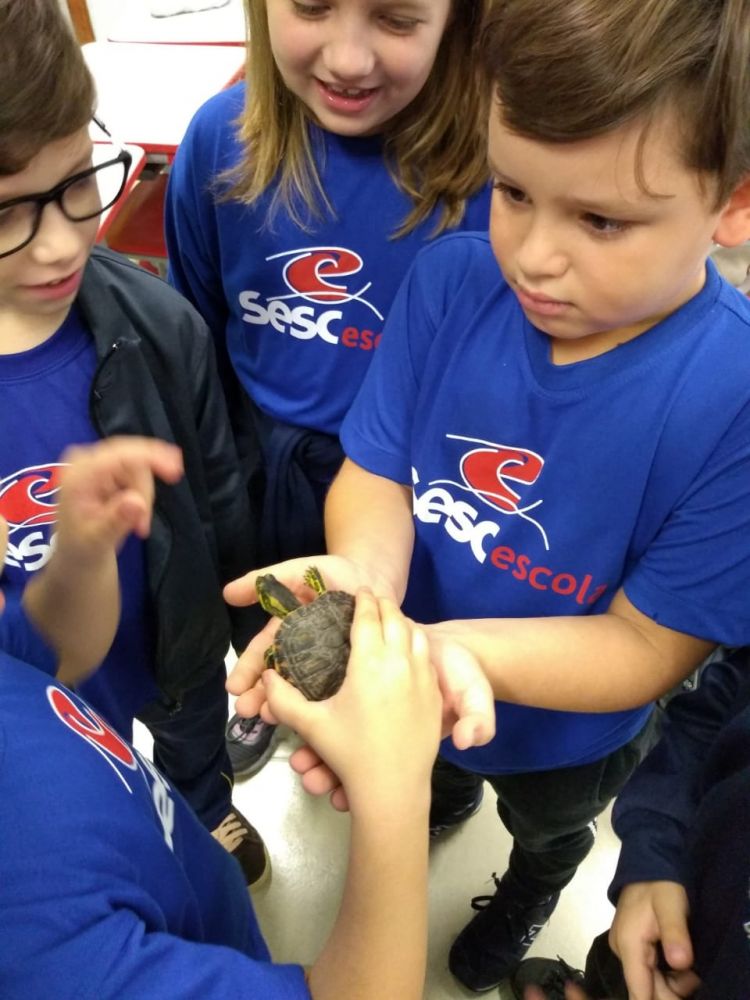Uma atividade inusitada mudou a rotina dos alunos do 1º ano do Ensino Fundamental do Sesc Escola de Chapecó. Pelo menos uma vez por mês, as crianças levam seus animais de estimação para participar das atividades escolares em sala de aula.