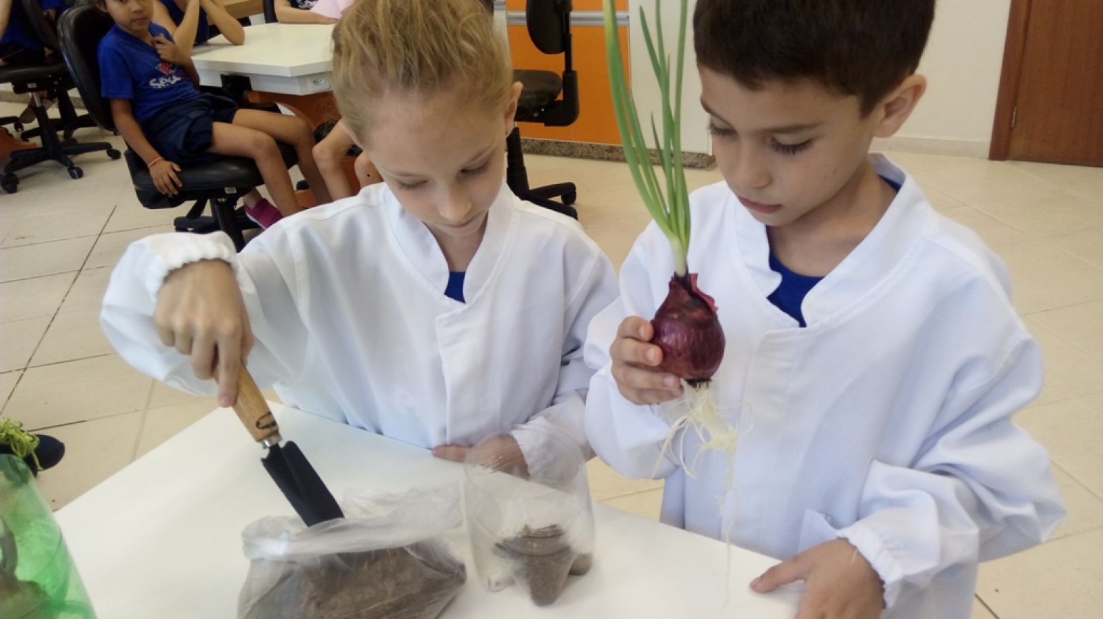 identificarem que apesar das duas cebolas brotarem, as folhas do sistema