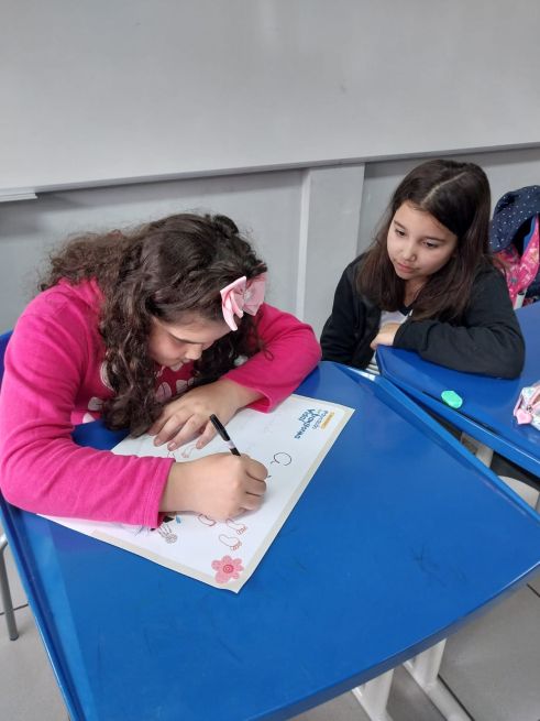 Além dos cartazes com mensagens reflexivas, as escolas também foram contempladas com versões personalizáveis. Esses cartazes, já emoldurados, possuem espaços em branco para que estudantes e a equipe escolar possam criar intervenções artísticas.