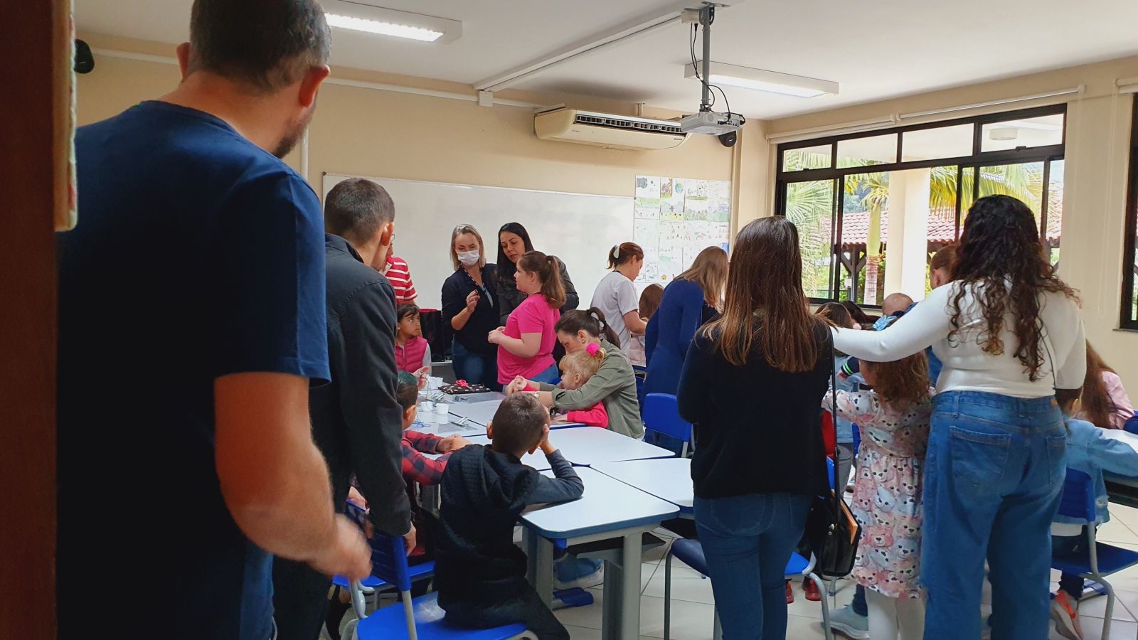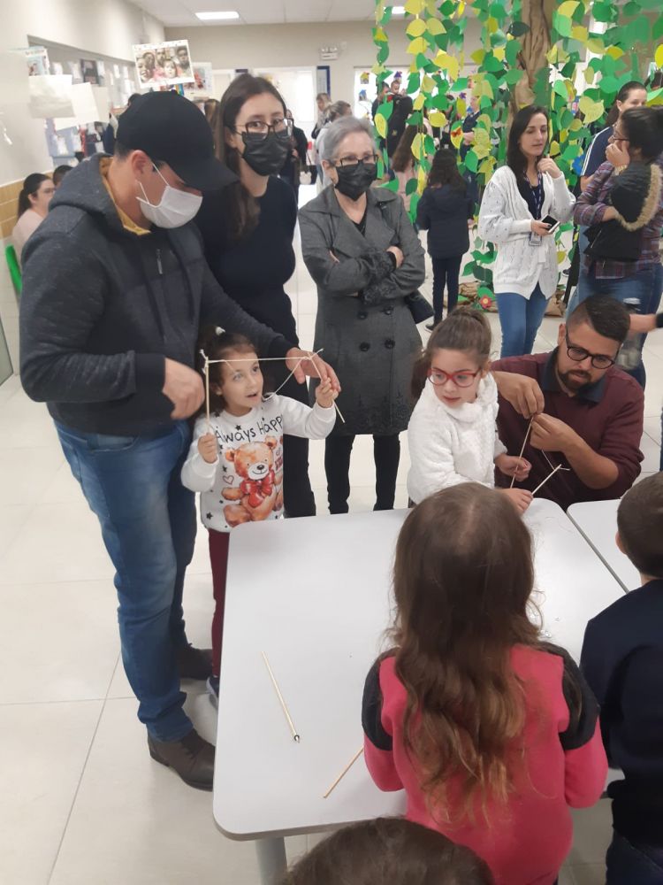 A Cláudia Ferronatto Gardini, mãe de aluna da turma de 4 anos também estava satisfeita. "Todas as oficinas que nós participamos foram espetaculares, nos deram a oportunidade de compartilhar momentos diferentes com os filhos e com os outros amigos de outras turmas. Conseguimos entender todo o processo dos professores envolvidos. Um momento único de ver minha filha compartilhando com os amiguinhos. Tudo muito lindo, o acolhimento e a organização".