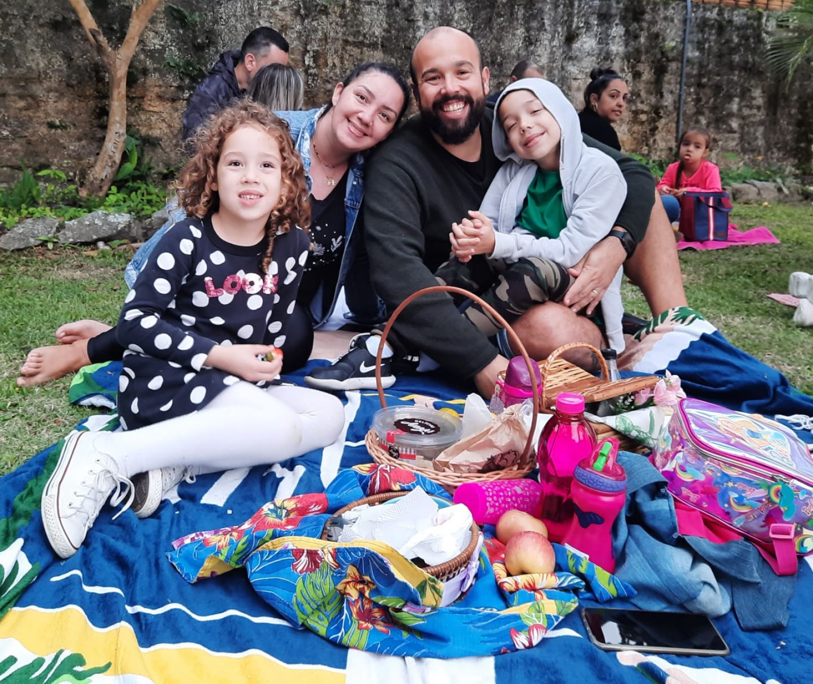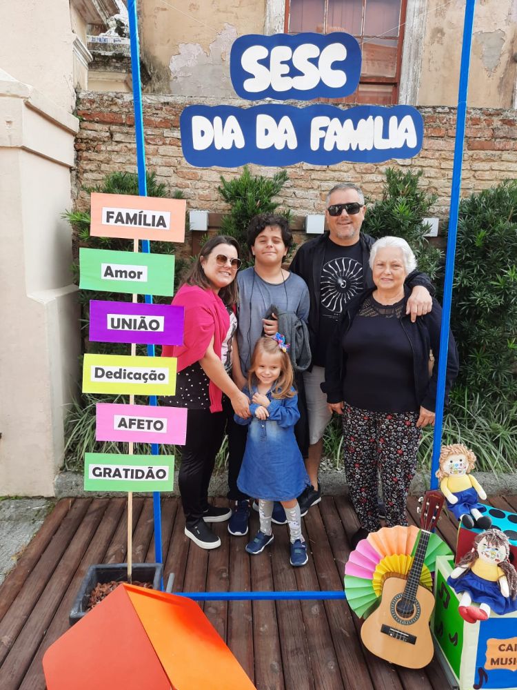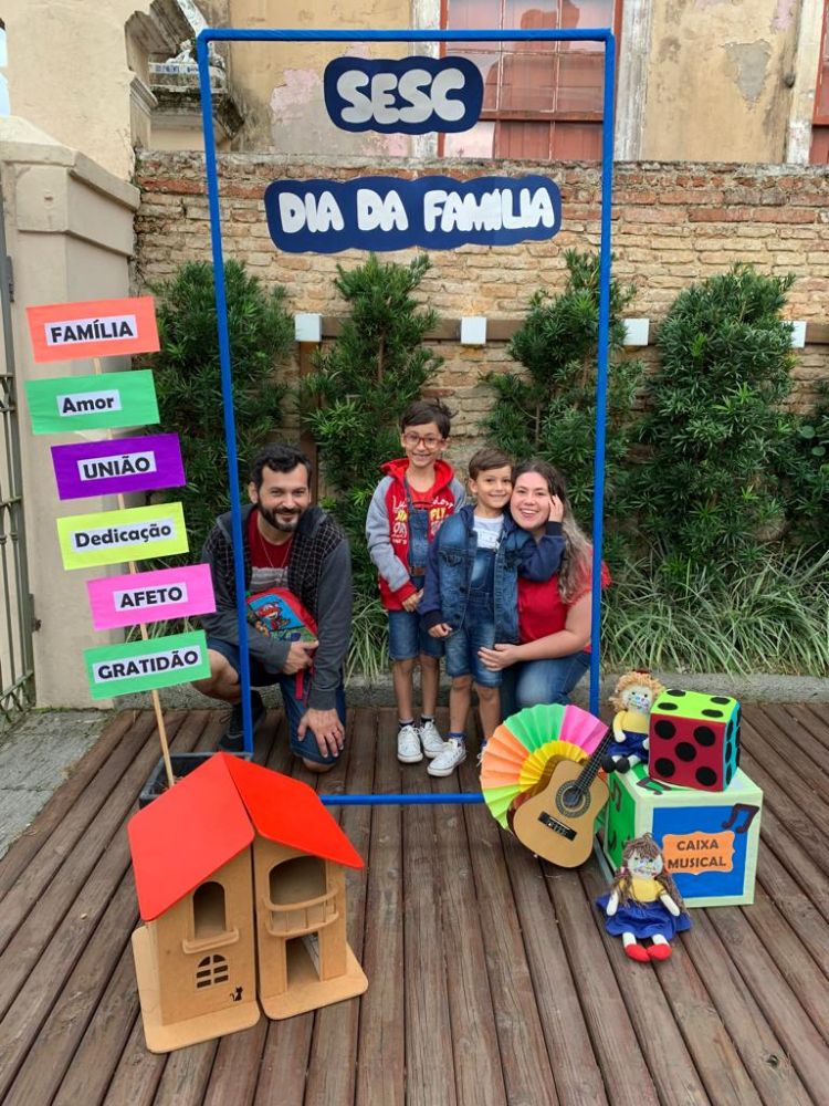 A família da Renata e da Lorena, das turmas de 2/3 anos e 5 anos vespertino, também esteve presente e a mãe Renata enalteceu a importância do evento: “o Dia da Família no Sesc foi muito especial. Como pais estávamos ansiosos para participar das atividades preparadas pela equipe do Sesc, e nossas filhas muito felizes em estarmos juntos na escola. Foi possível participar com elas das atividades desenvolvidas, na preparação do copinho para colocar a plantinha, brincar com bolha de sabão, correr no campo. Receber um coração feito de massinha da nossa filha mais nova encheu o coração de amor. Foram momentos de dedicação exclusiva as atividades com elas, um prazer estar em contato também com a equipe da escola, com certeza foi muito especial e importante para fortalecer o laço da família".