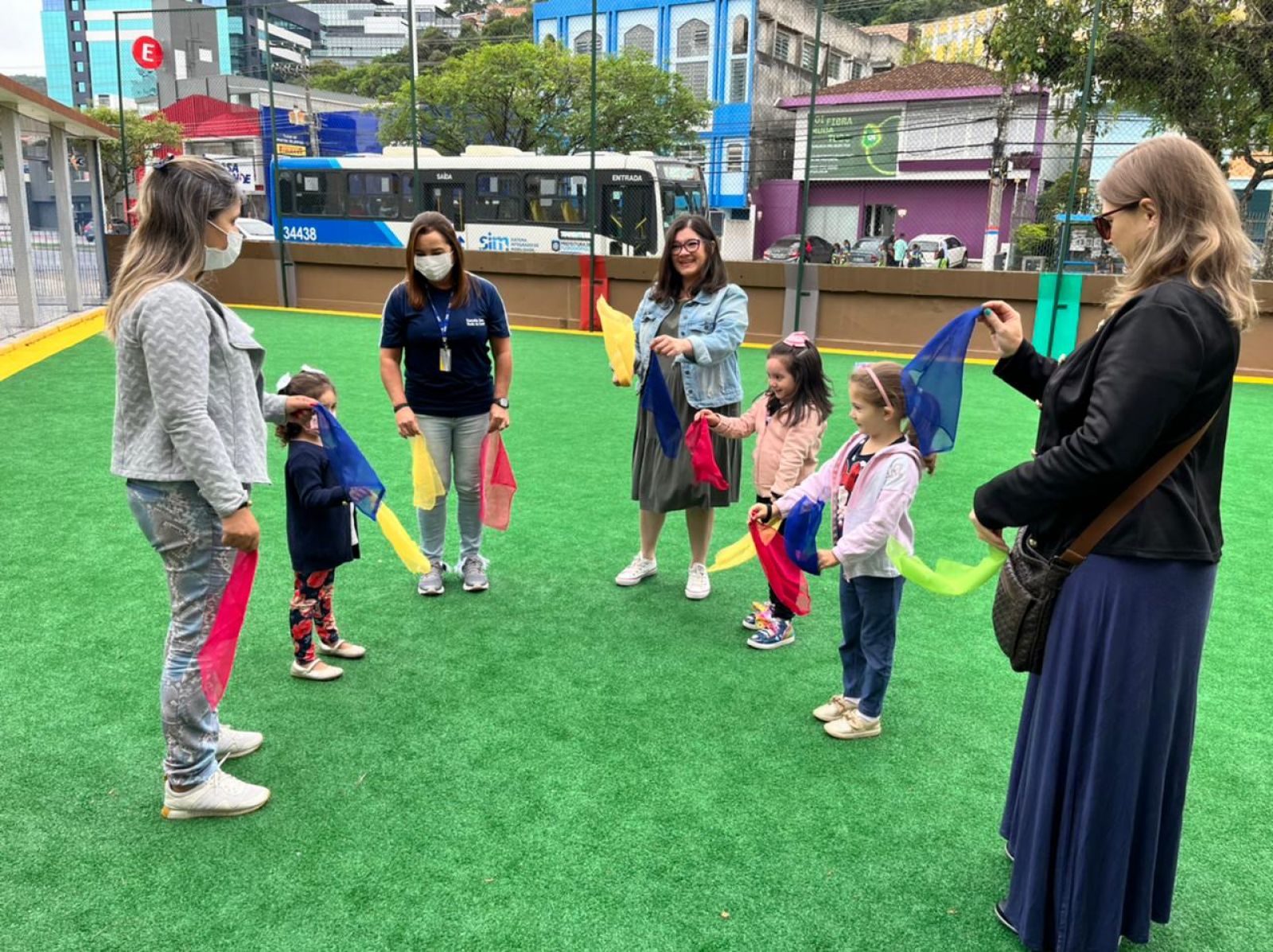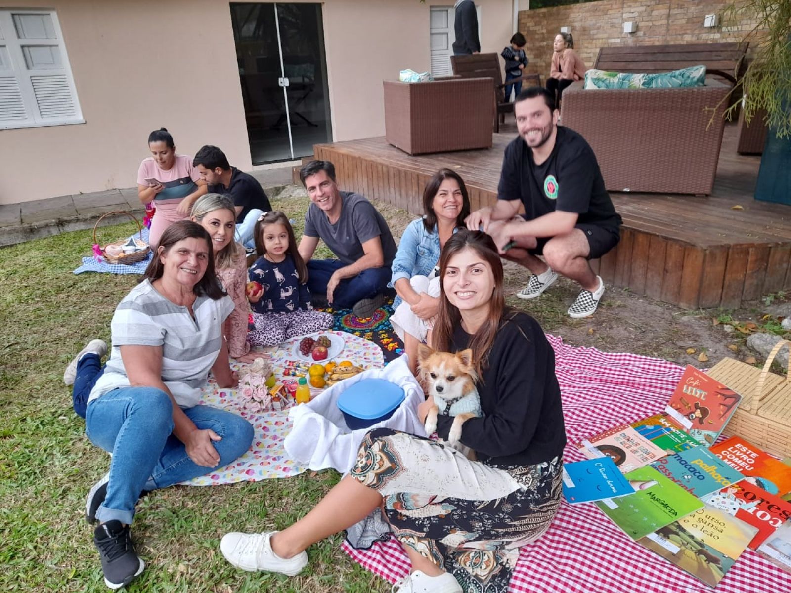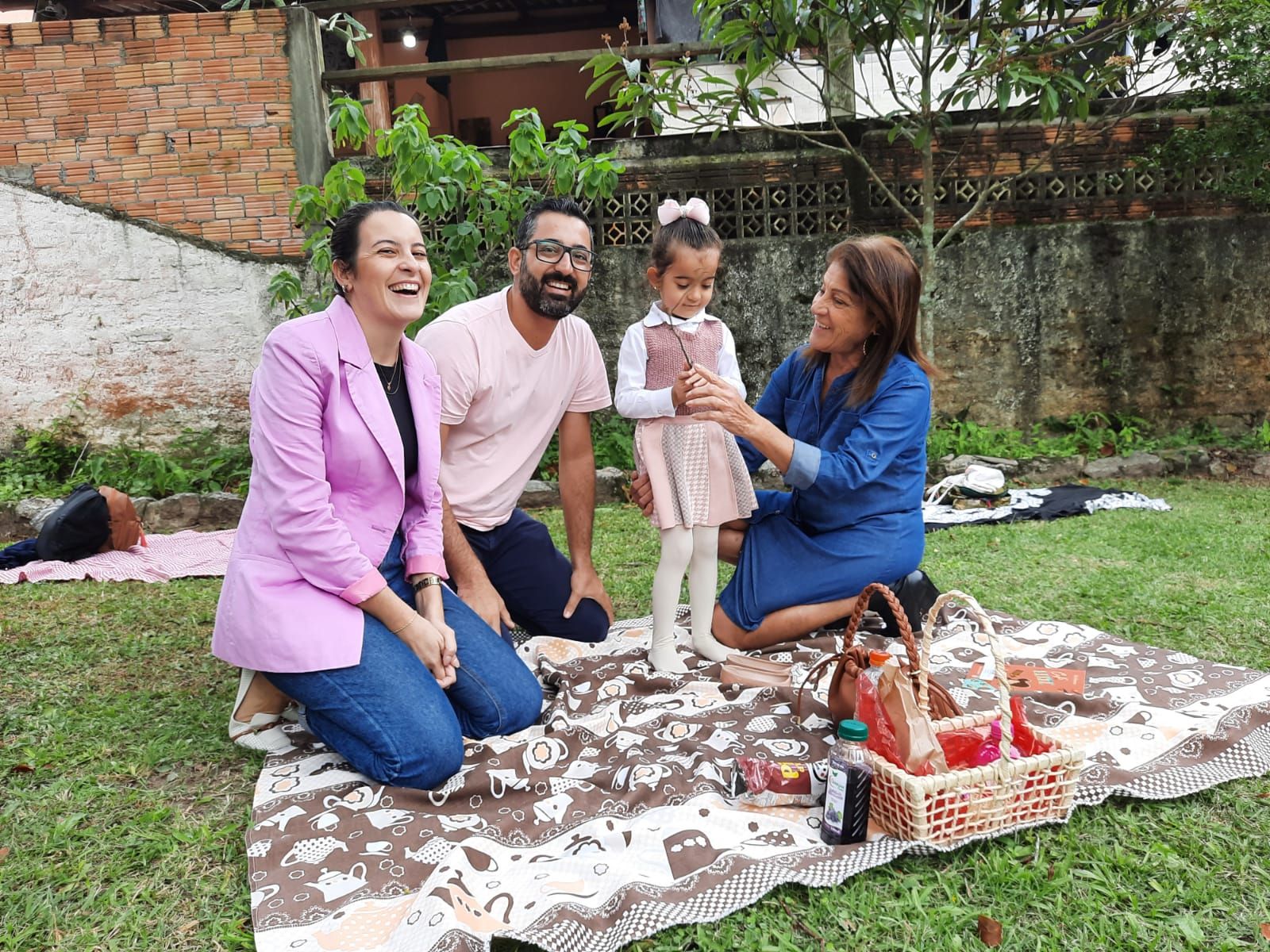 A família da Renata e da Lorena, das turmas de 2/3 anos e 5 anos vespertino, também esteve presente e a mãe Renata enalteceu a importância do evento: “o Dia da Família no Sesc foi muito especial. Como pais estávamos ansiosos para participar das atividades preparadas pela equipe do Sesc, e nossas filhas muito felizes em estarmos juntos na escola. Foi possível participar com elas das atividades desenvolvidas, na preparação do copinho para colocar a plantinha, brincar com bolha de sabão, correr no campo. Receber um coração feito de massinha da nossa filha mais nova encheu o coração de amor. Foram momentos de dedicação exclusiva as atividades com elas, um prazer estar em contato também com a equipe da escola, com certeza foi muito especial e importante para fortalecer o laço da família".