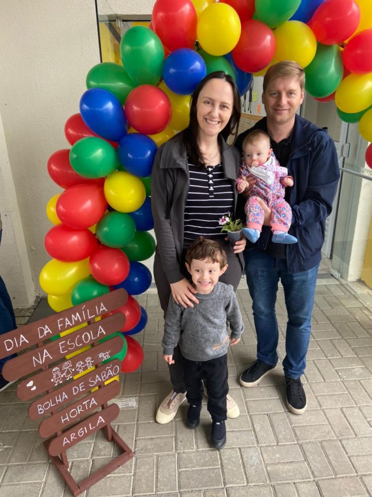 A Edna e o Marlon, pais da aluna Laura, da turma de 3 anos matutino, estavam felizes em poder participar de um evento na Escola. "Após mais de dois anos de pandemia, eventos como o Dia da Família são importantes para a socialização entre crianças e família. As oficinas foram muito criativas, utilizando materiais recicláveis e tornando o dia ainda mais agradável”.