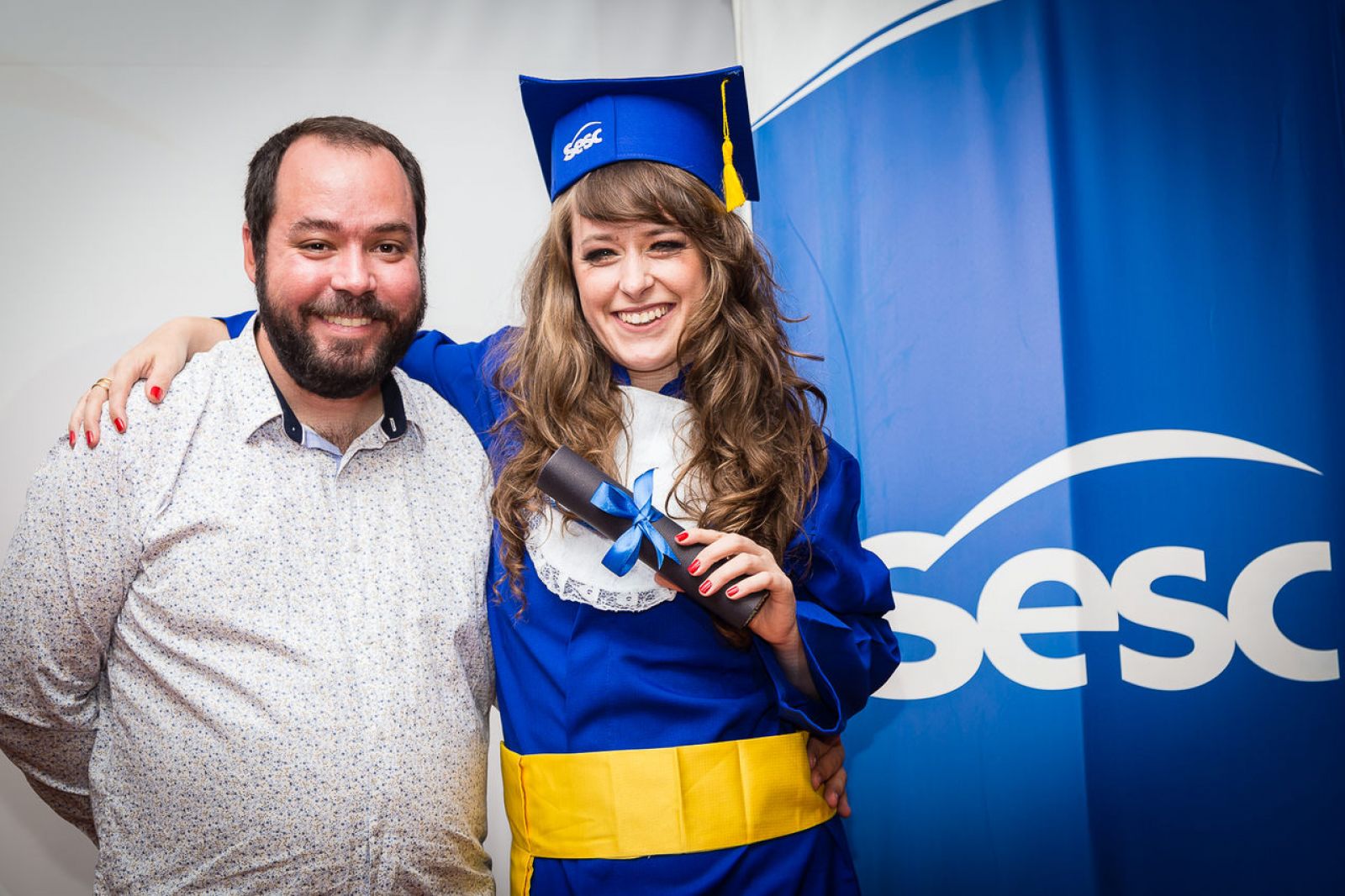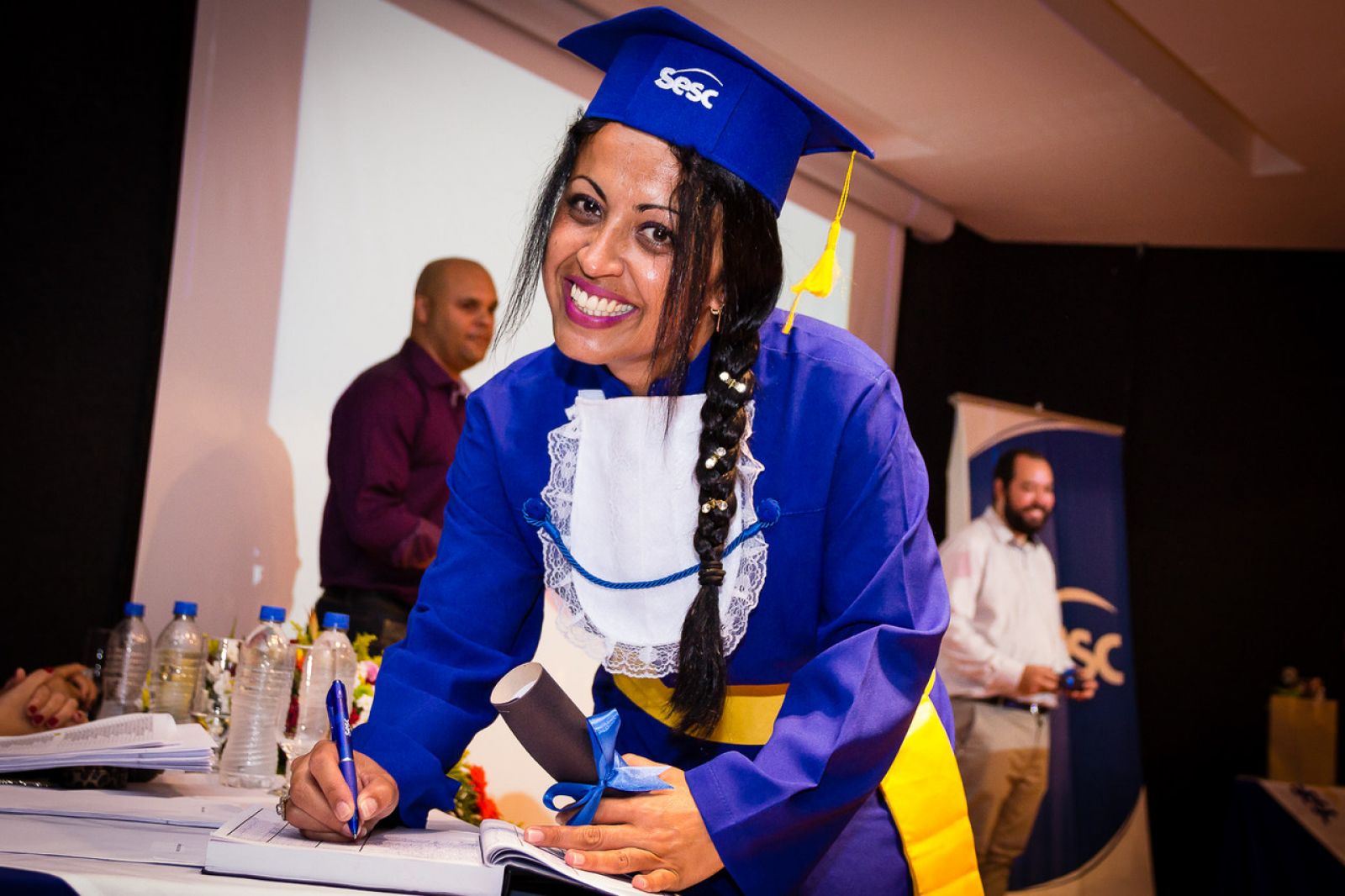 “Essa formatura significa tudo! O Sesc era meu refúgio, voltei a estudar num momento muito difícil, não foi fácil, mas foi uma iluminação. Fiquei muito tempo afastada da escola. Nunca faltei e não tem professores melhor do que os do Sesc. Melhor lugar para estudar, eu nunca tinha visto teatro e no Sesc eu vi. Essa escola foi também uma lição de vida. Adorava física e química era apaixonada e já estou fazendo o curso de técnico em Farmácia. Antigamente mulher casava e não estudava mais e a gente sabe que sem saúde e educação a gente não é nada”, disse.