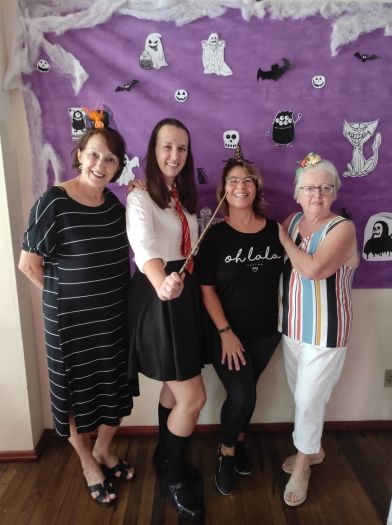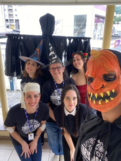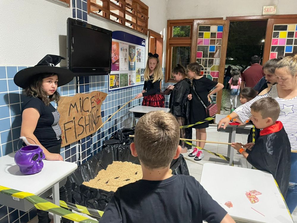 No Sesc Blumenau, por exemplo, aconteceram momentos de jogos, brincadeiras, desfile de fantasias e a celebração do famoso “trick or treat” em formato de lanche coletivo. As atividades, integradas entre alunos de várias idades, propiciaram momentos de confraternização, trocas e aprendizado do idioma.