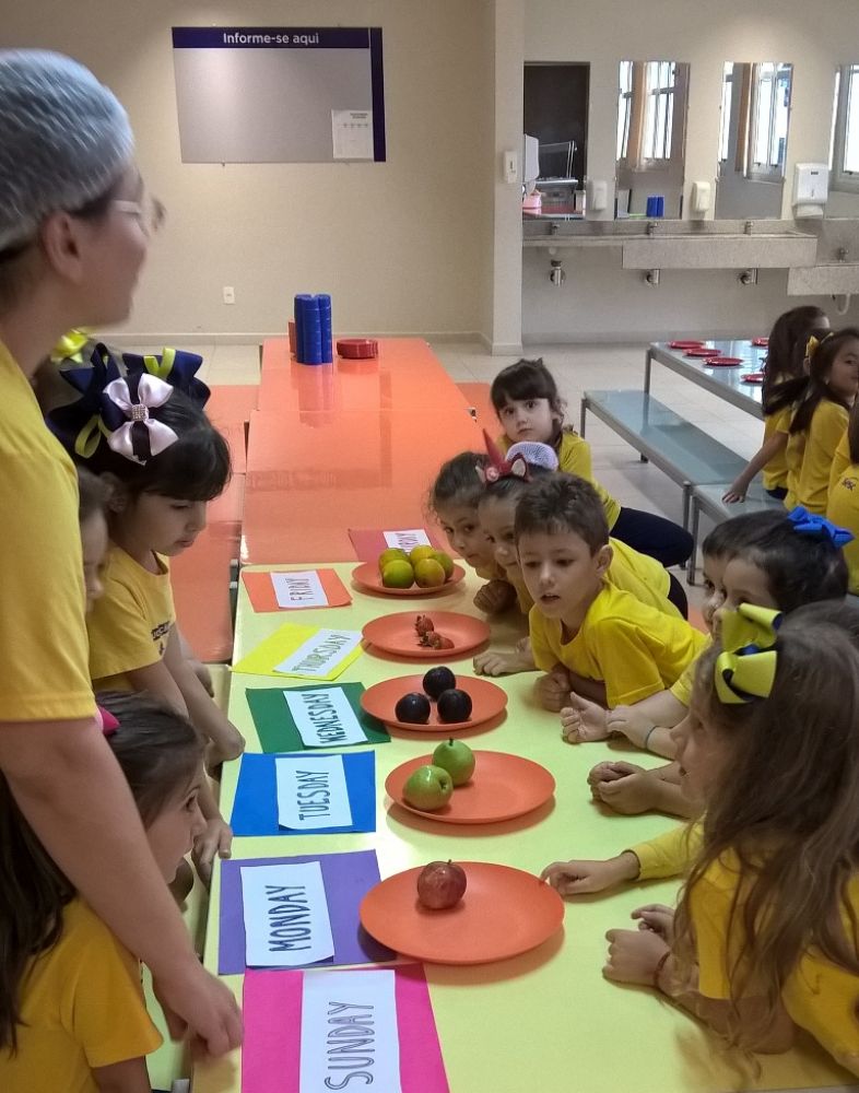 semana come uma fruta diferente, e o número das frutas vai aumentando conforme