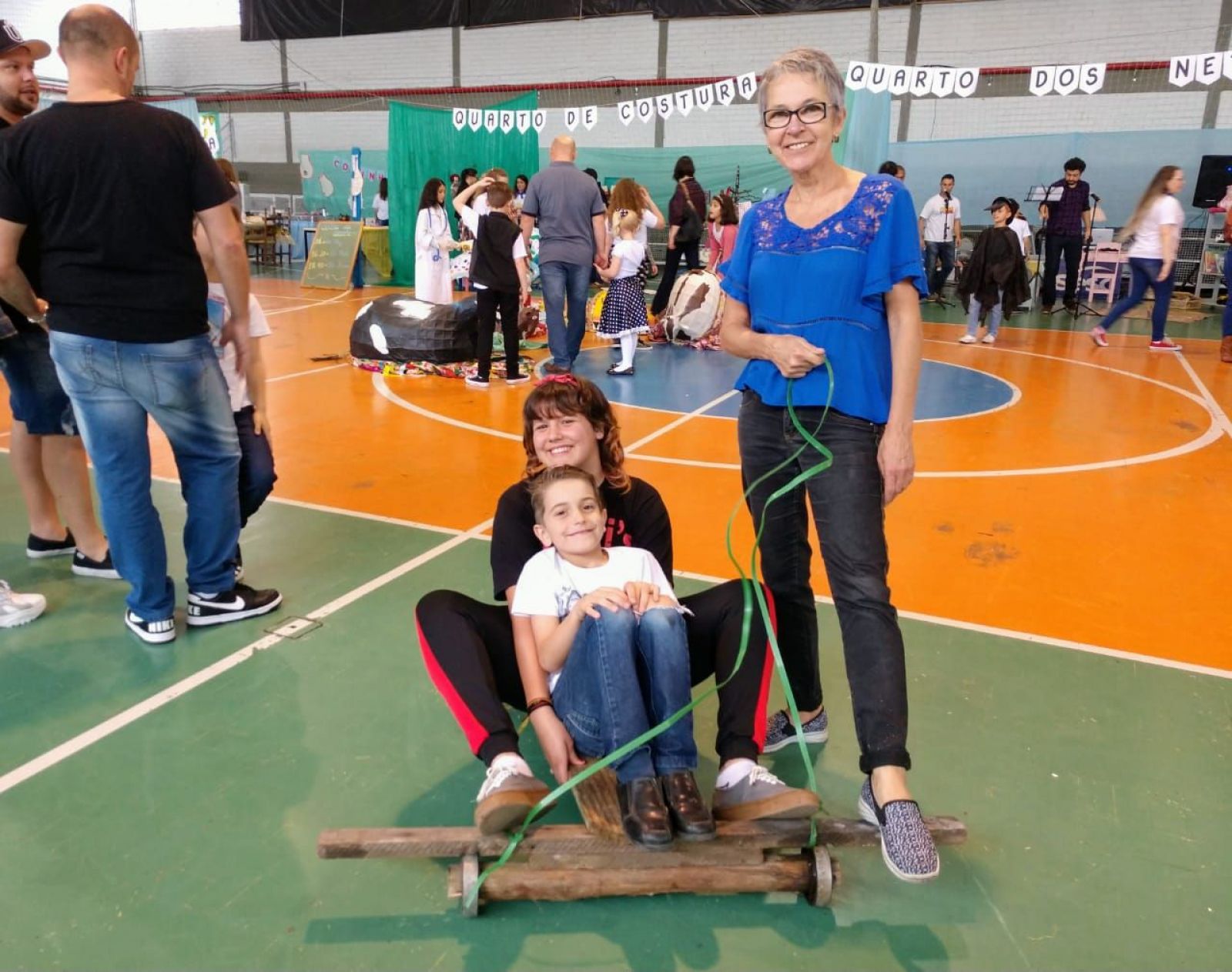“Eu estou deslumbrada!”, afirma Maria Bernadete Giacomelli, que é avó de quatro alunos da Escola Sesc Palhoça. “A cada vez que acontece algum evento aqui no Sesc, eu sempre me surpreendo. A gente está muito contente com o ensino. O que me chama mais a atenção é a união das famílias, que hoje em dia é difícil de ver nas escolas. O Sesc trabalha muito a família, eu aprecio muito isso”, completa. Bernadete é avó dos alunos Alice (Educação Infantil), Breno (1º ano), Paula (3º ano) e Bruna (4º ano). Na foto, ela aparece ao lado das netas Bruna e Paula, e do tio delas, Valério Alves, que também fez questão de prestigiar a Mostra.