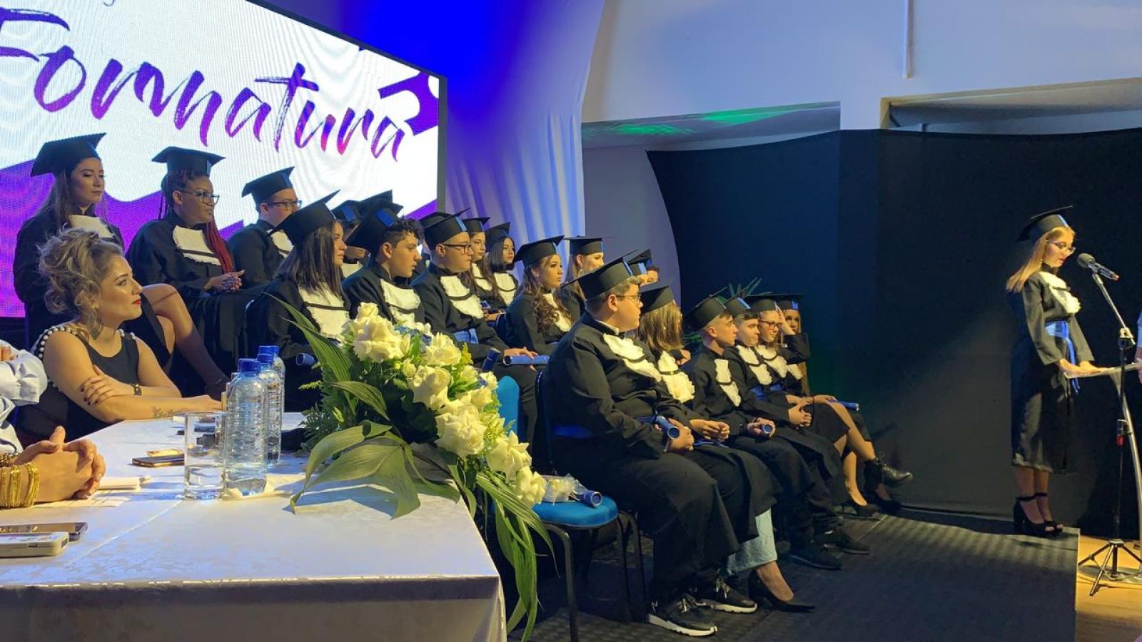 Em Palhoça, esta é a primeira turma a receber o diploma de conclusão do curso na Escola Sesc. No seu discurso, o gerente da Unidade, Wilson Elias Filho propôs uma reflexão: “Quando você cresce, percebe que a definição de sucesso muda. Para muitos de vocês, sucesso significa ser capaz de tomar suas próprias decisões, ser livre. Porém o verdadeiro sucesso, a coisa mais importante da vida é vivê-la com integridade, e não se entregar à pressão; não tentar ser algo que não é. Viva sua vida como uma pessoa honesta e caridosa; contribua de alguma forma para melhorar nosso mundo. Então para encerrar lhes aconselho: Sigam sua paixão e mantenham-se fiéis a vocês mesmos”.