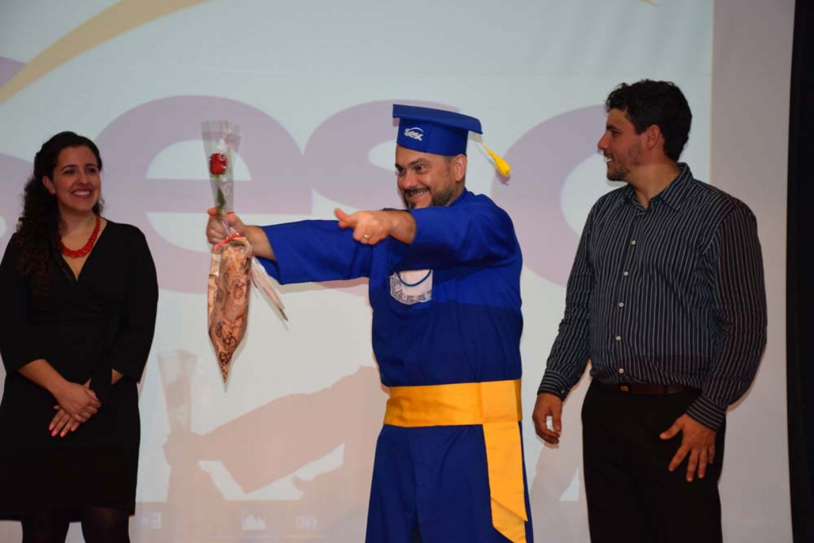 "Carreguei o peso do lápis e do caderno nas costas, hoje levo a leveza do conhecimento na mente". O verso grafado no convite da formatura da Educação de Jovens e Adultos do Sesc Prainha em Florianópolis foi composto pelo aluno Adriano Silva e escolhido pelos colegas para estar em destaque no cartão. O poema diz muito sobre o autor, que se descobriu poeta nas aulas do curso e recebeu o diploma de conclusão do Ensino Médio na noite da sexta-feira, 13 de julho, ao lado de outros 41 alunos, familiares e amigos, em cerimônia realizada em Florianópolis.