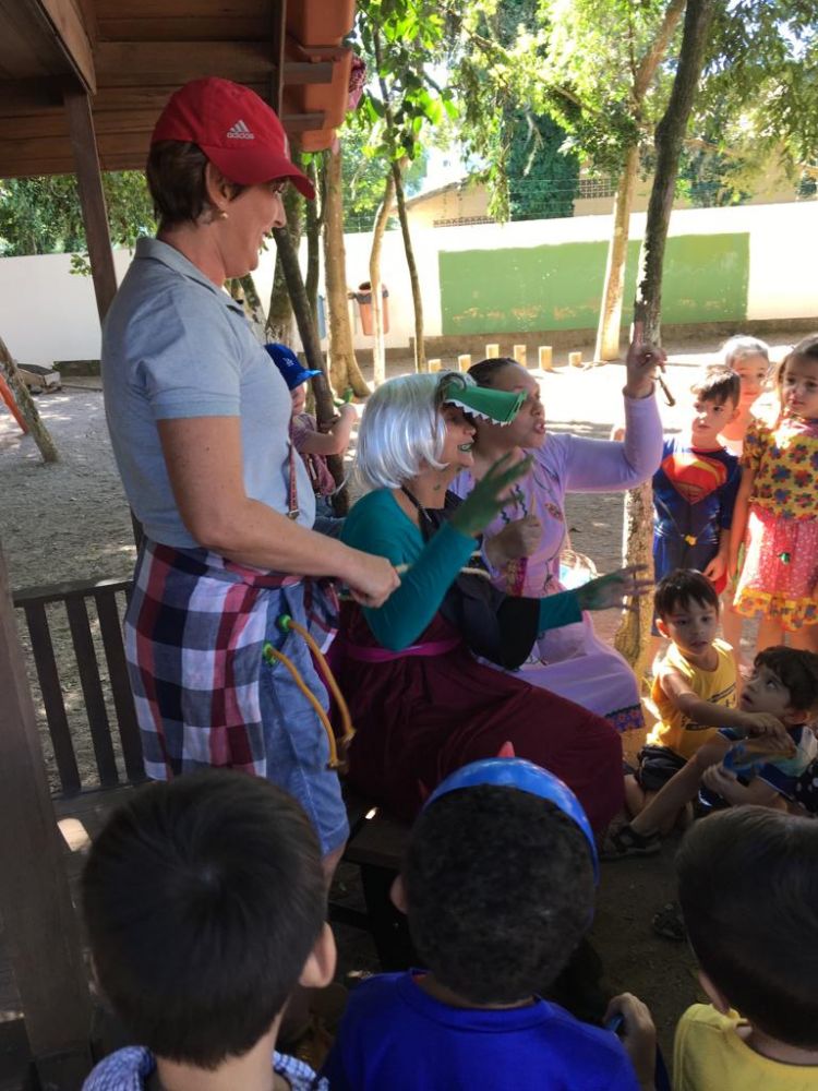 Ah! Não podemos deixar de dizer que houve até a caçada para colocar o Saci na garrafa, as crianças receberam as instruções do Visconde e saíram pela escola a sua procura. E não é que encontramos vários Sacis escondidos pelo bosque! Também experimentamos as receitas deliciosas de Tia Nastácia, ouvimos atentamente os conselhos do Visconde e vimos de perto a coragem de Pedrinho em capturar a Cuca. A diversão foi garantida e deixou a criançada ainda mais envolvida com o imaginário que as histórias possibilitam.