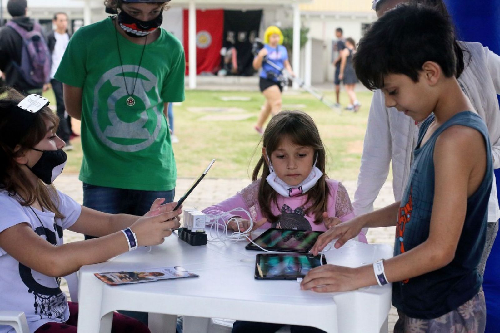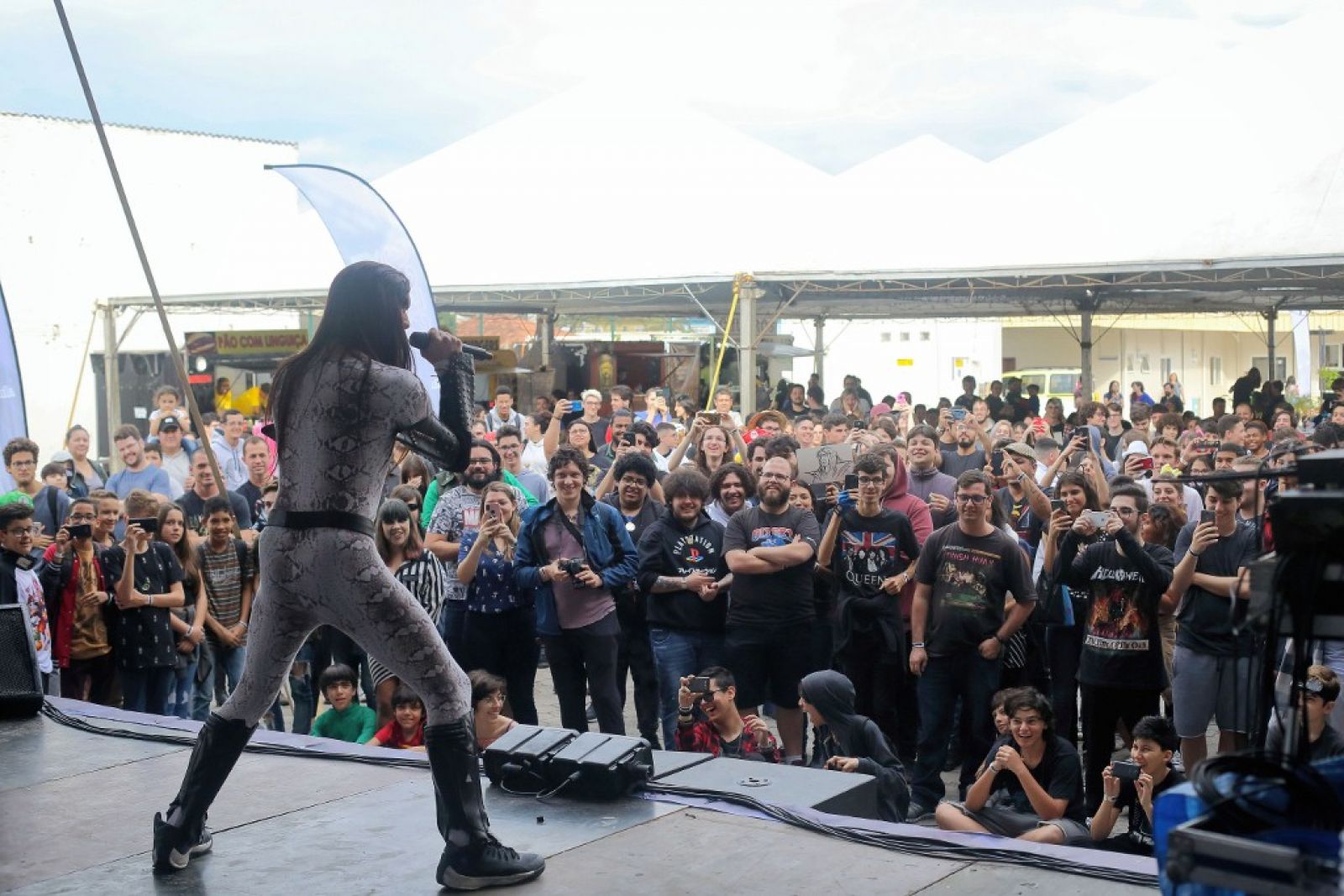 O k-pop foi o que trouxe a estudante Emely Soares e os colegas do 1º ano do Ensino Médio para o evento. A turma se considera “100% geek” e circulou com a plaquinha que virou febre, onde cada um podia estampar a mensagem que queria passar. A deles oferecia “abraços grátis”. “É um lugar onde nos sentimos confortáveis, pois encontramos pessoas que gostam das mesmas coisas que a gente”, conta a jovem.