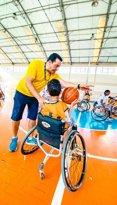 "O Gustavo é um menino que sempre amou esportes. Faz natação desde bebê, depois começou a participar de corridas com triciclos e futsal. Mas quando viemos ver o primeiro jogo de basquete de cadeirantes com ele, foi simplesmente amor a primeira vista.