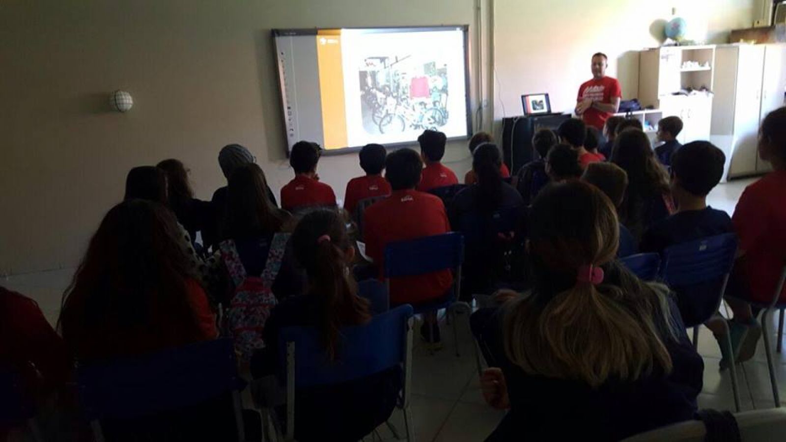 As atividades se intensificaram na semana de 24 a 28/04, no entanto, desde o início do mês foi lançado o desafio para os alunos da Escola Sesc em Rio do Sul para a construção de um desenho que ilustrasse a importância do uso da bicicleta. As turmas de Educação Infantil a 9° ano participaram e com eles foi montada uma exposição no hall de entrada da Unidade. Outra atividade aconteceu no dia 25/04 e envolveu todas as turmas e onde cada uma recebeu uma letra para compor através dos corpos, montassem a palavra Dia do Pedal.