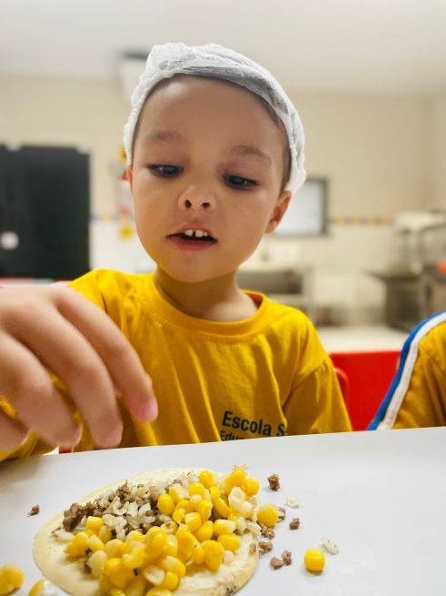 Esses aspectos foram trabalhados com os alunos da Educação Infantil do Sesc por meio de contações de histórias que contextualizaram as características do modo de comer e os níveis de processamento dos alimentos com o efeito de cada um deles sobre a saúde e bem-estar das pessoas; atividades pedagógicas com elementos presentes nas contações de histórias; e uma oficina culinária com a receita do Burrito de arroz com feijão, valorizando a combinação tradicional brasileira dos alimentos e fortalecendo as dimensões culturais e sociais das práticas alimentares.