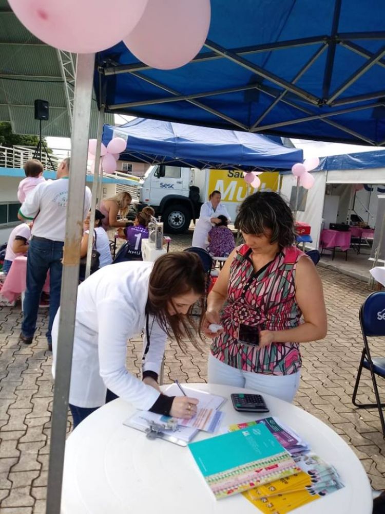 Para celebrar o Dia Internacional da Mulher, a Unidade Móvel Sesc Saúde Mulher que está em Faxinal dos Guedes até 9 de abril, realizando exames gratuitos de mamografia e papanicolaus, foi palco de uma grande ação voltada ao público feminino. Em parceria com o Governo Municipal, através da Secretaria de Saúde, Assistência Social e empresas do município, o Sesc promoveu uma programação especial na Praça Ventura Migliorini ao longo do dia 08 de março.