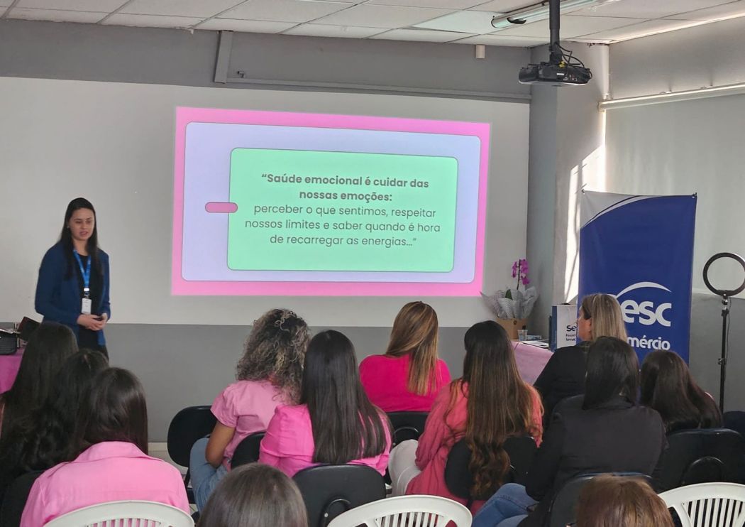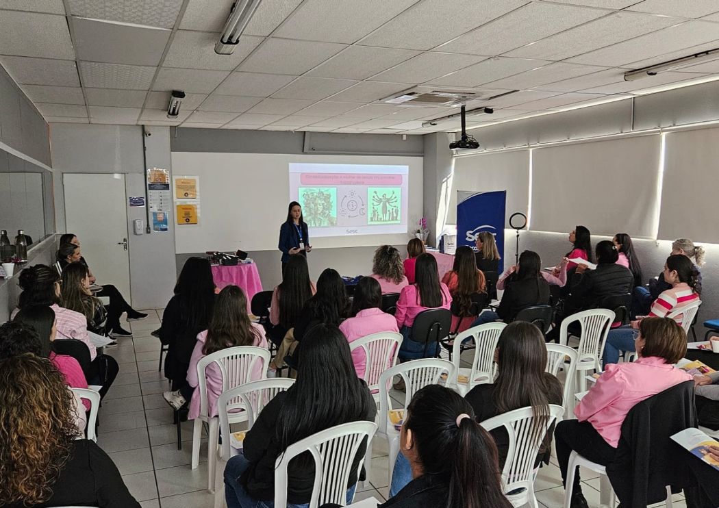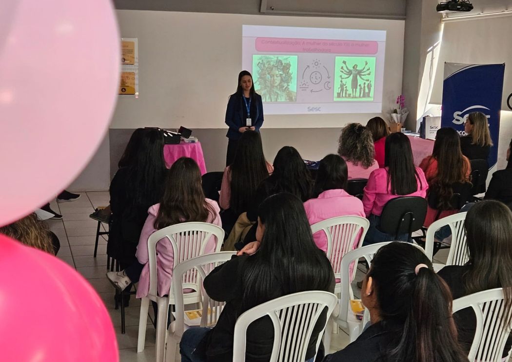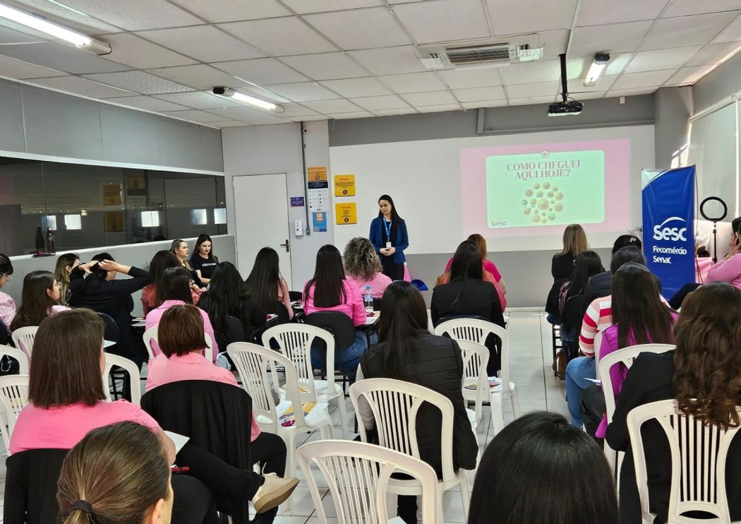 Entre os destaques, esteve o Café Rosa, em Chapecó, que reuniu 47 participantes do Supermercado Celeiro para uma palestra conduzida pela psicóloga clínica do Sesc Chapecó abordando práticas de autocuidado e saúde emocional. A programação incluiu ainda orientações de saúde bucal, divulgação dos serviços de saúde do Sesc, aferição de pressão arterial e teste de glicemia, além de um espaço dedicado a informações sobre as atividades da instituição.